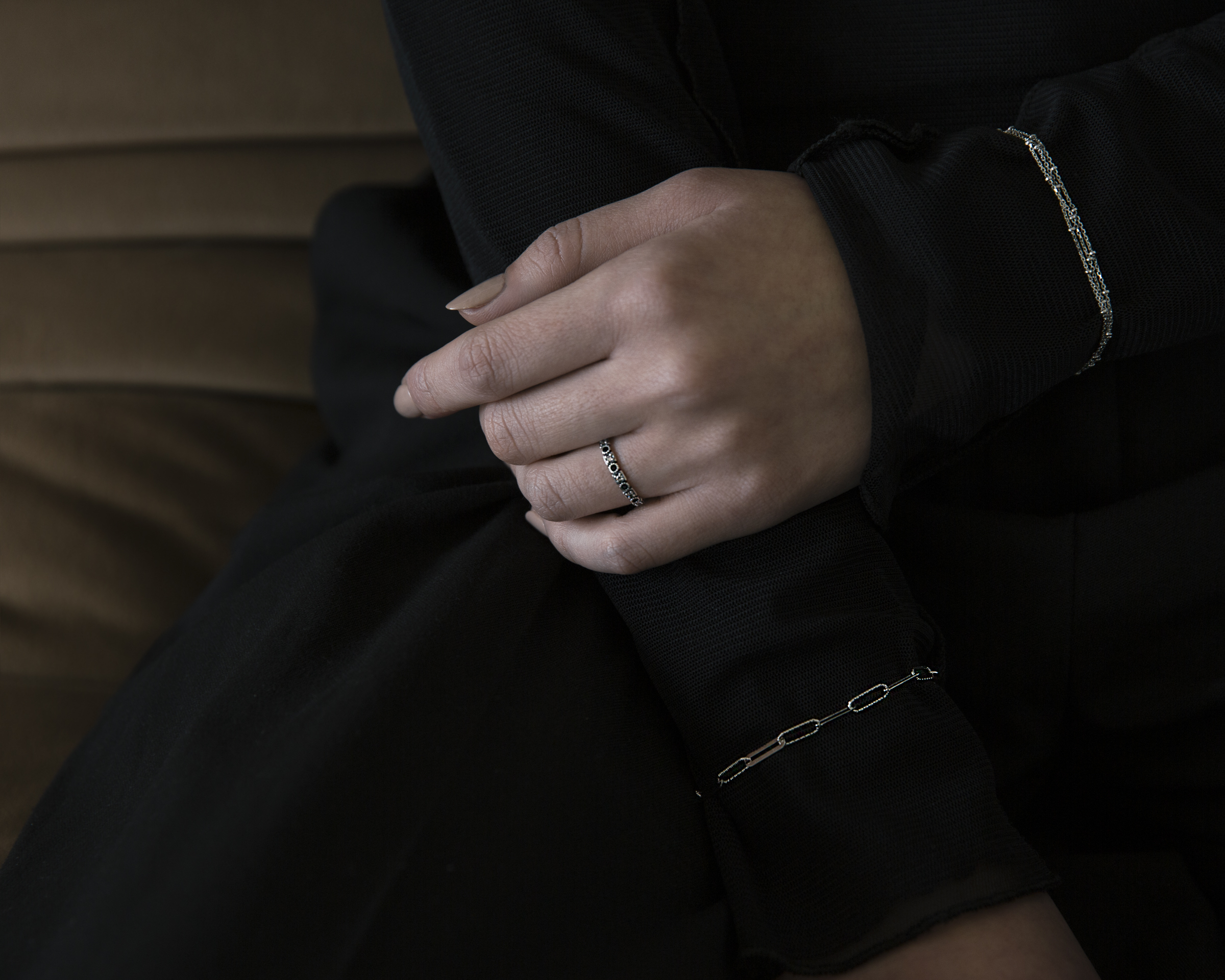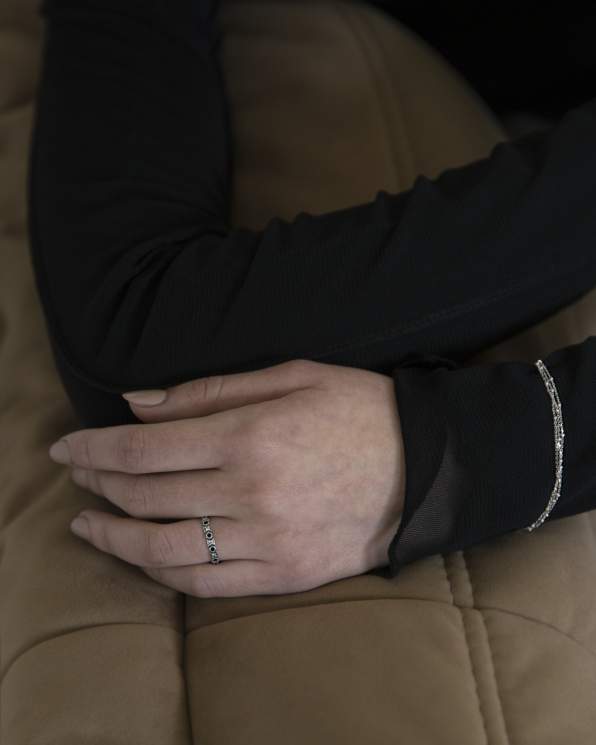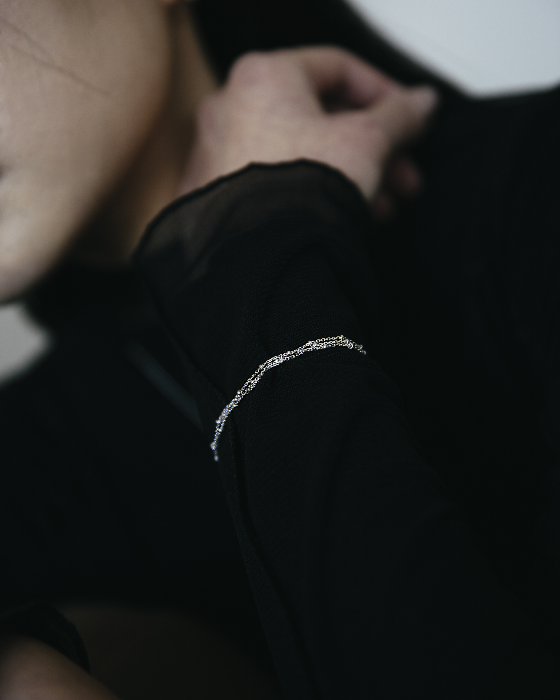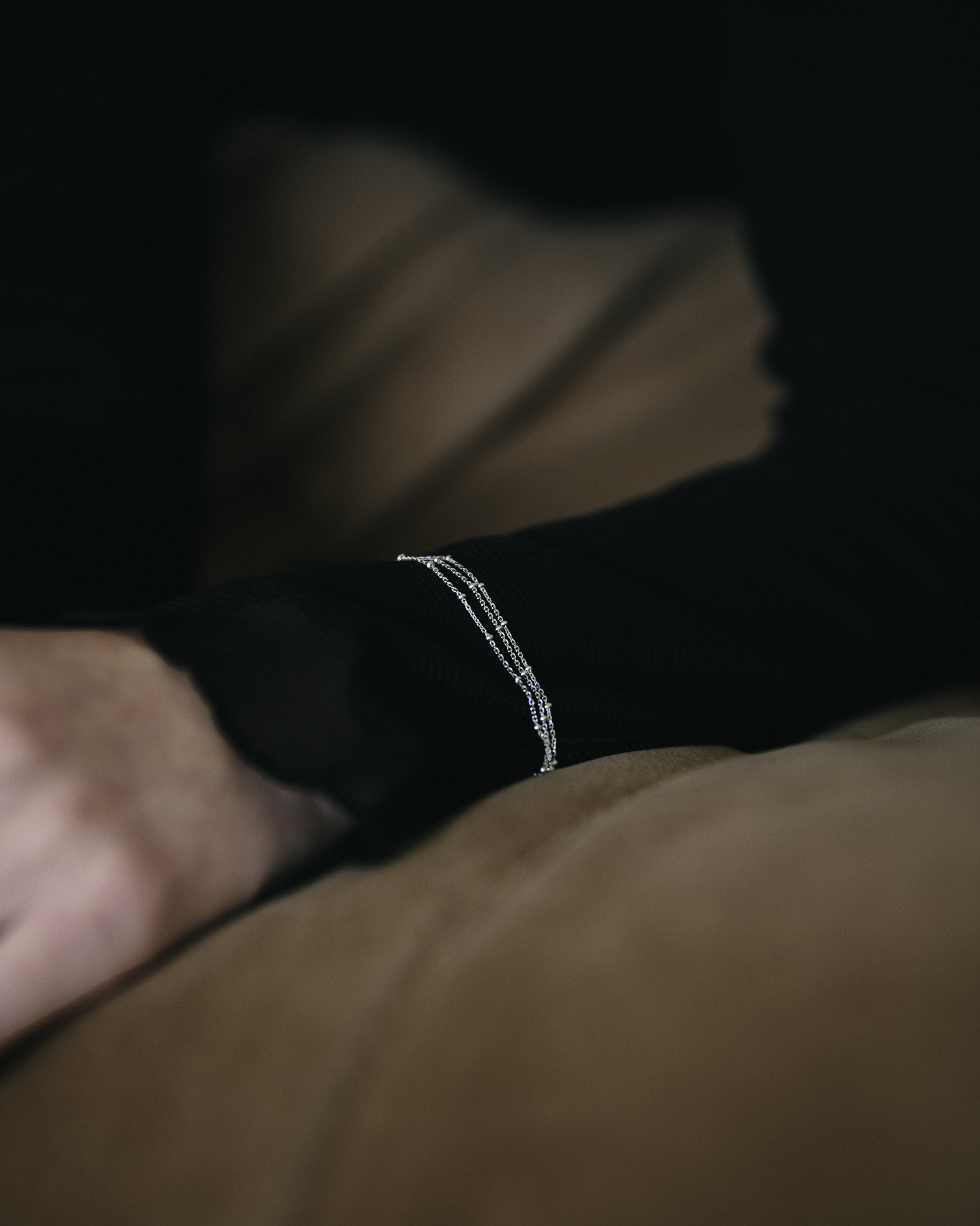 以三條細緻鍊身打造輕盈自然線條,畫龍點睛的小圓銀珠穿插其中,