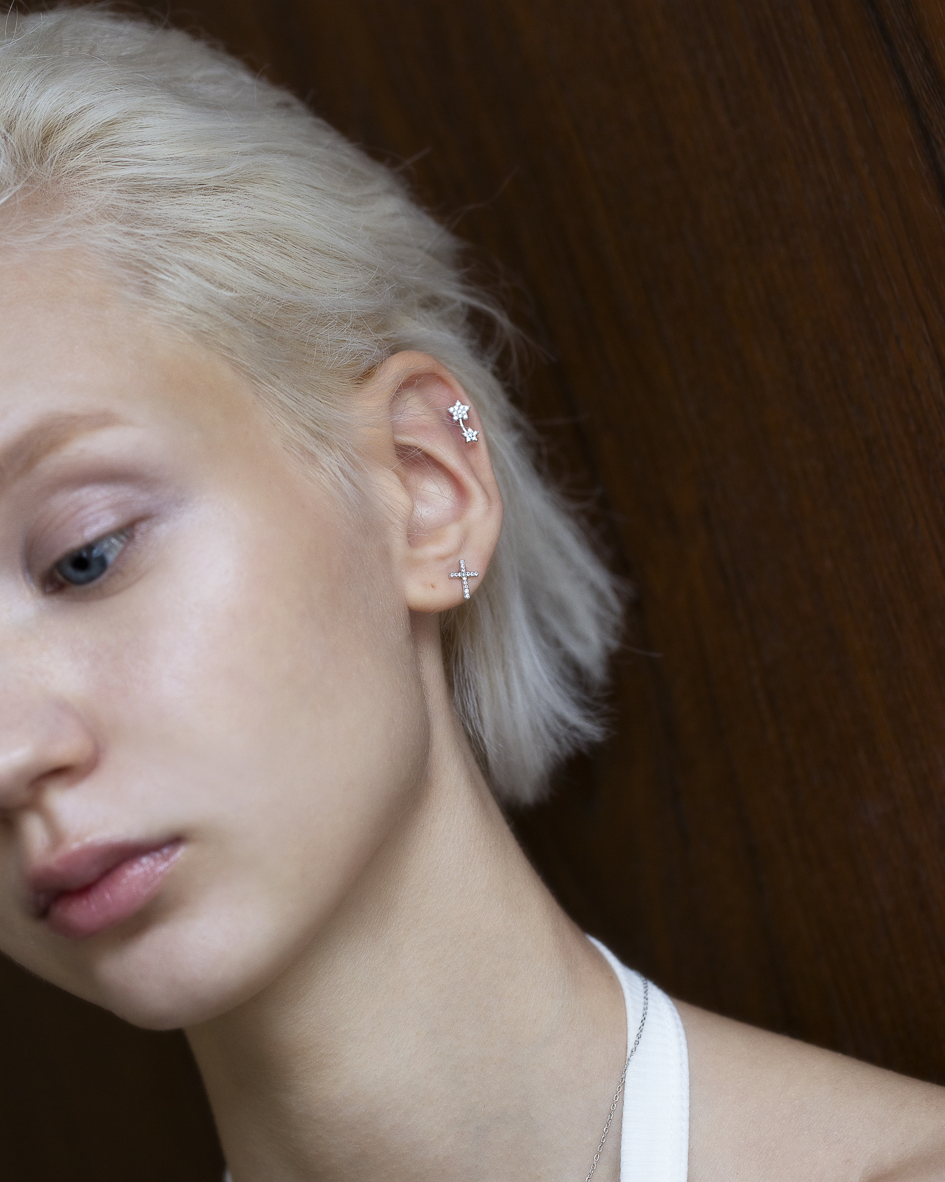 單獨配戴低調卻明確,也能與其他耳環混搭,成為造型中的一個輕聲卻清楚的存在。