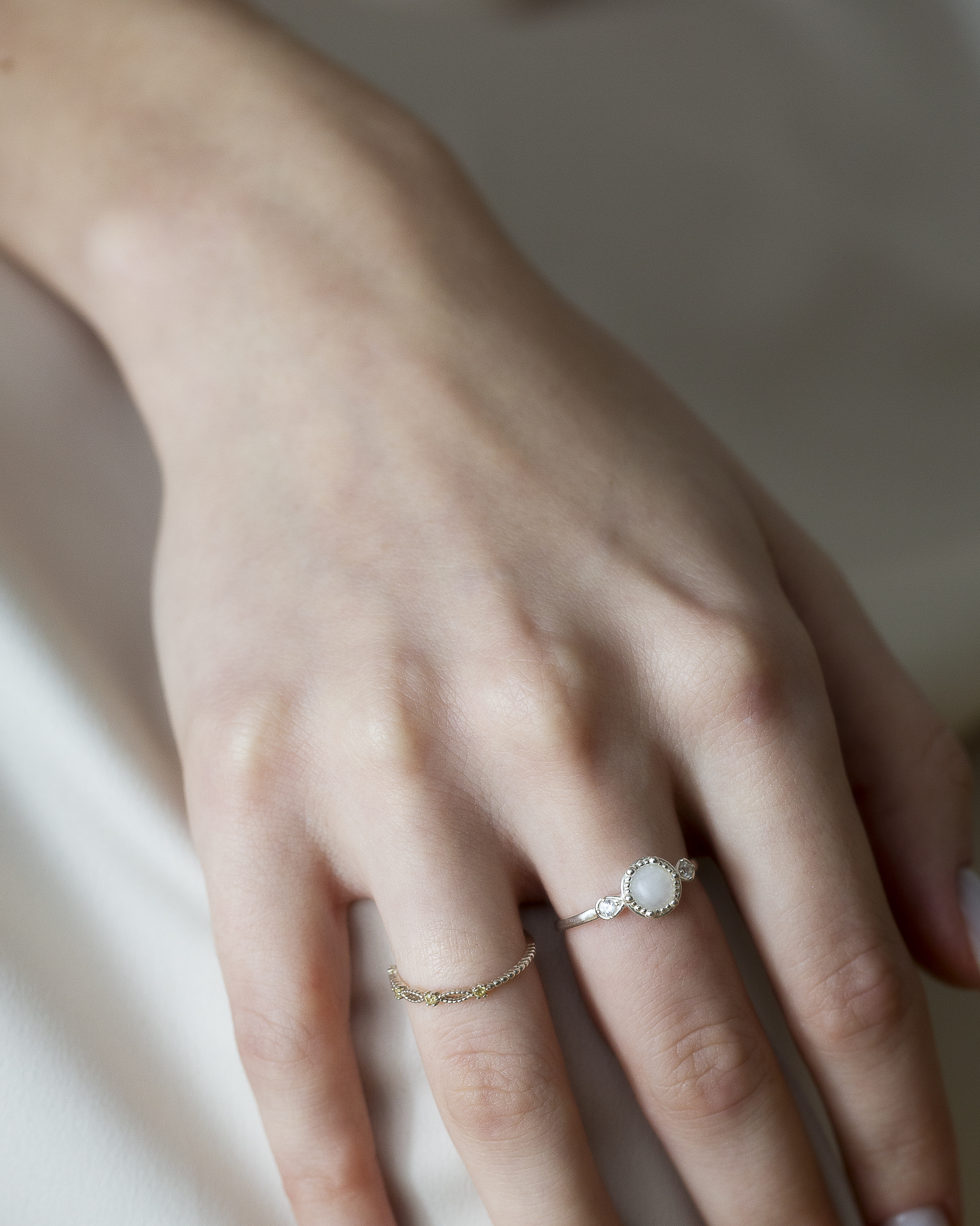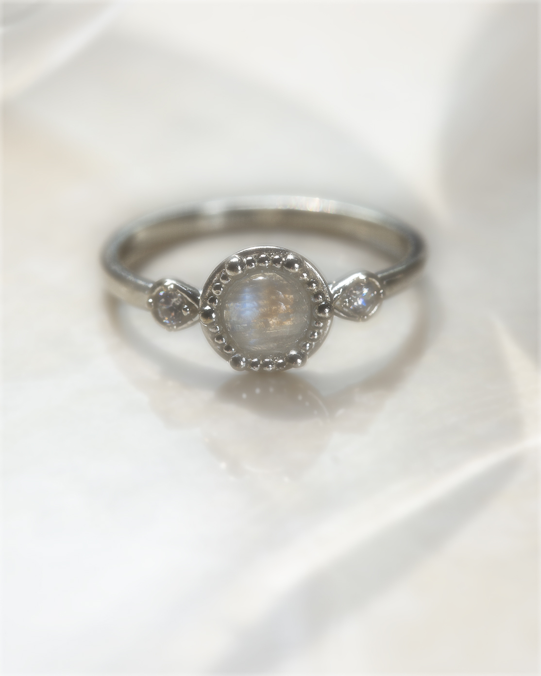 ※ 月光石在光線照射下會呈現夢幻的藍白色光暈,稱為「月光效應」(Adularescence),彷彿月光灑落其上。商品照片所呈現的色澤會因拍攝光線和角度而略有變化,皆屬自然現象。