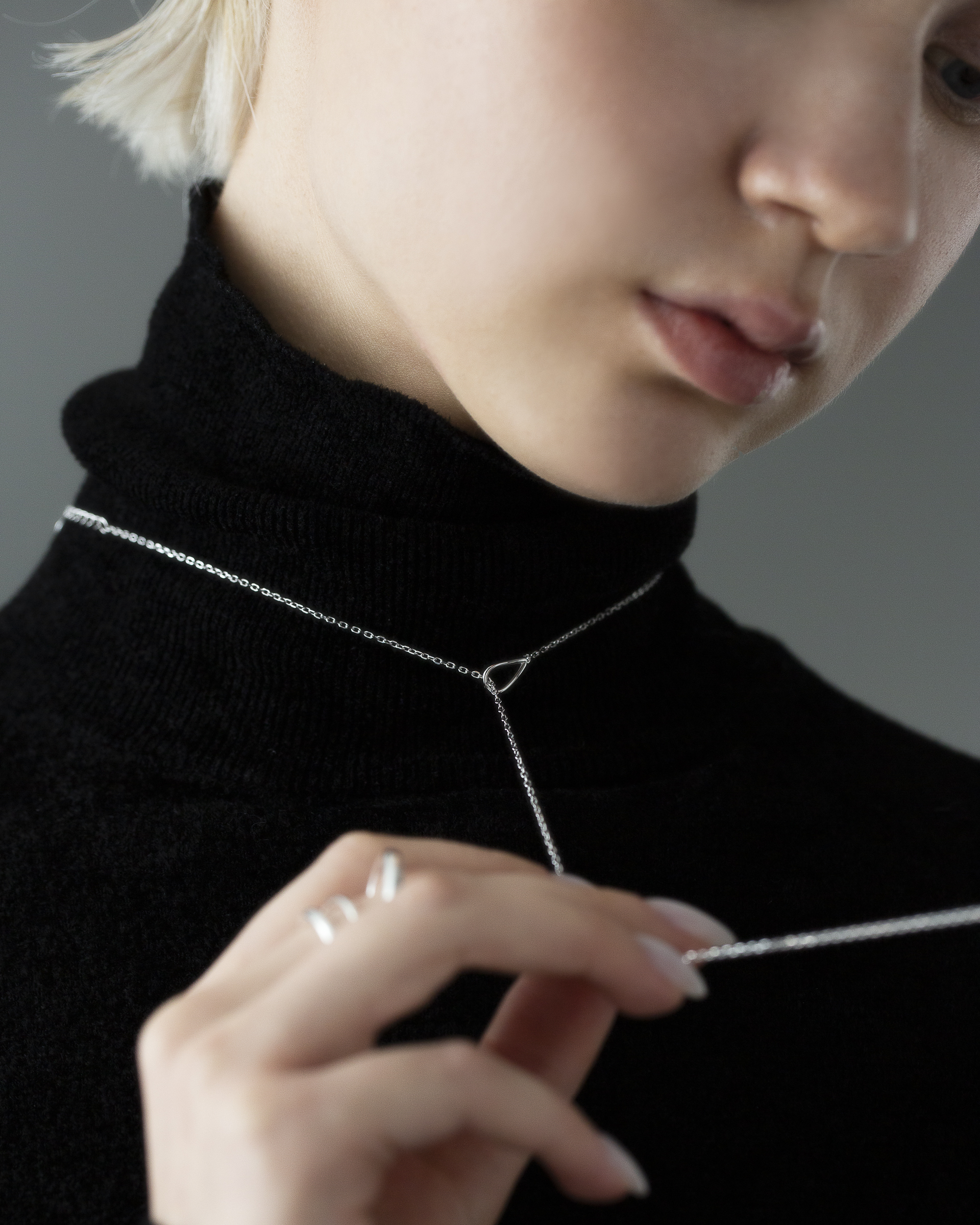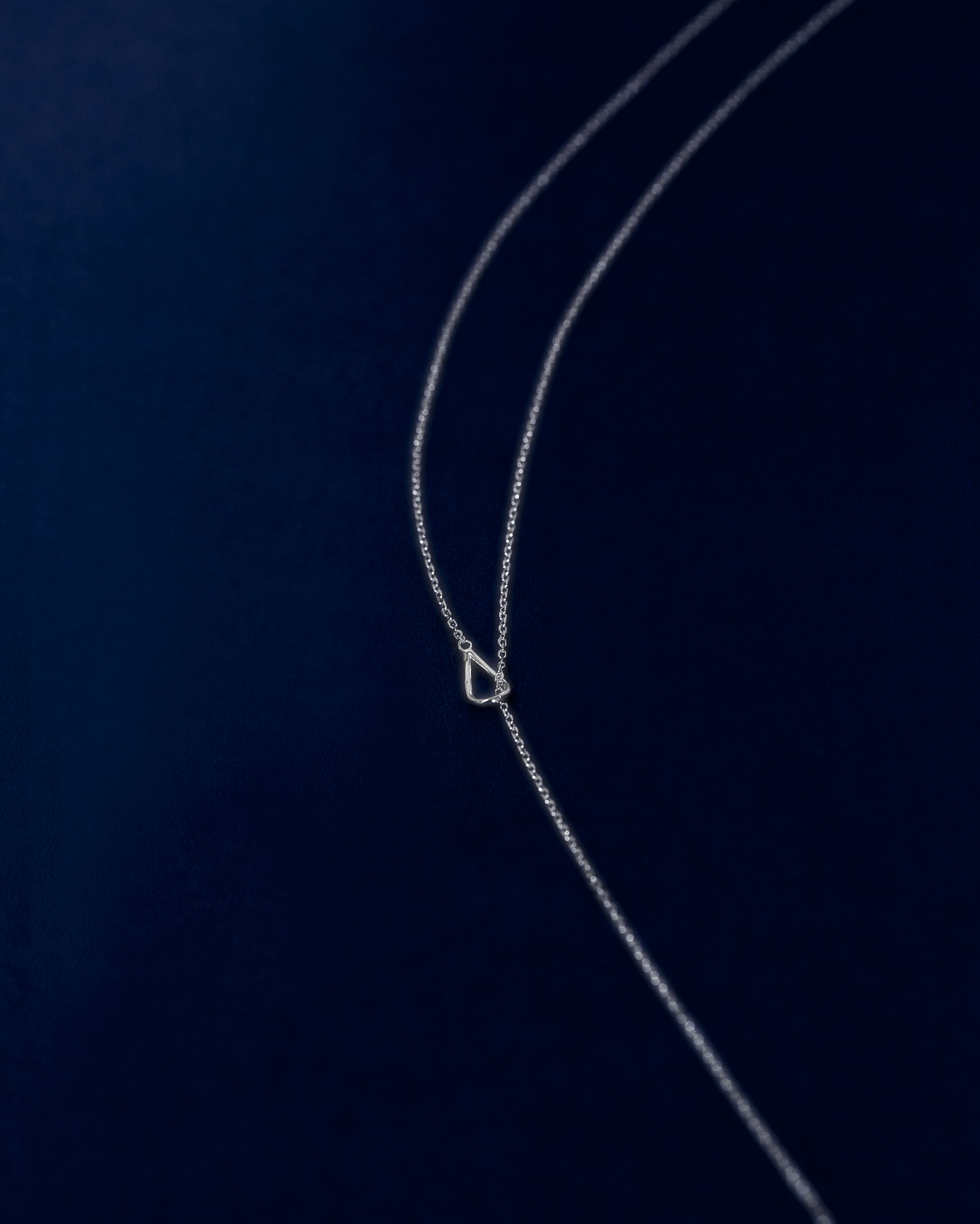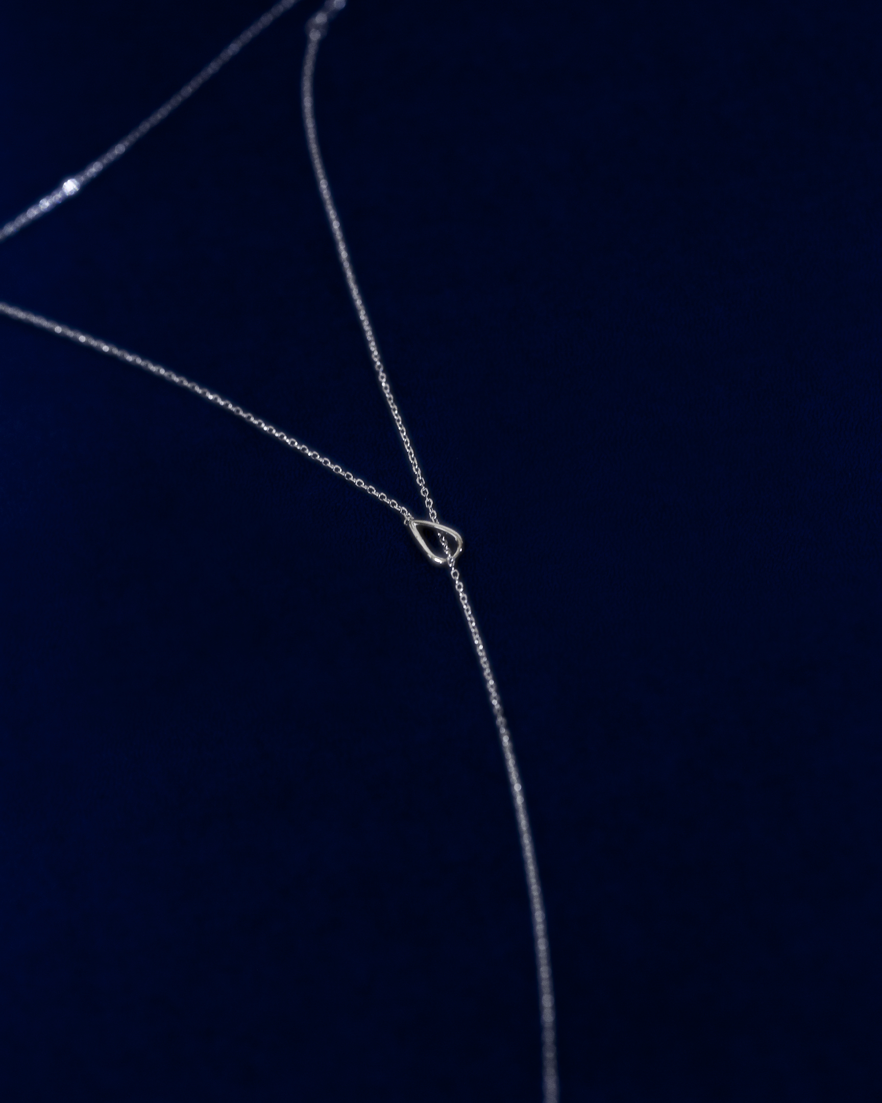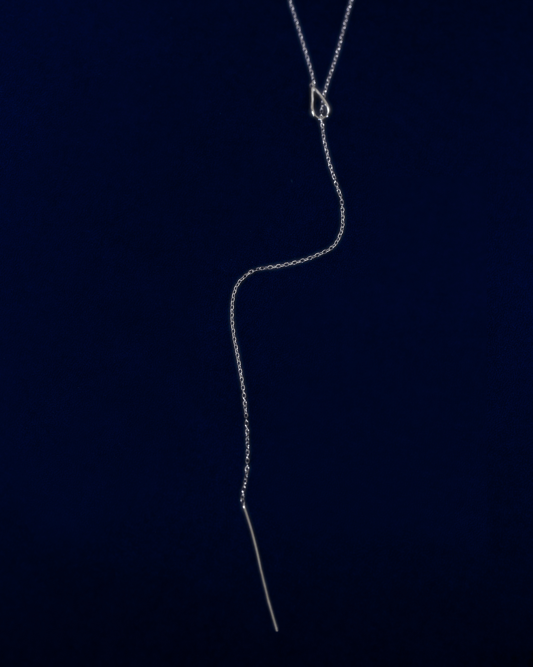 極細鍊條在被一枚流線型橢圓環暫時圈住,線條像是停頓了些許,又繼續延伸。