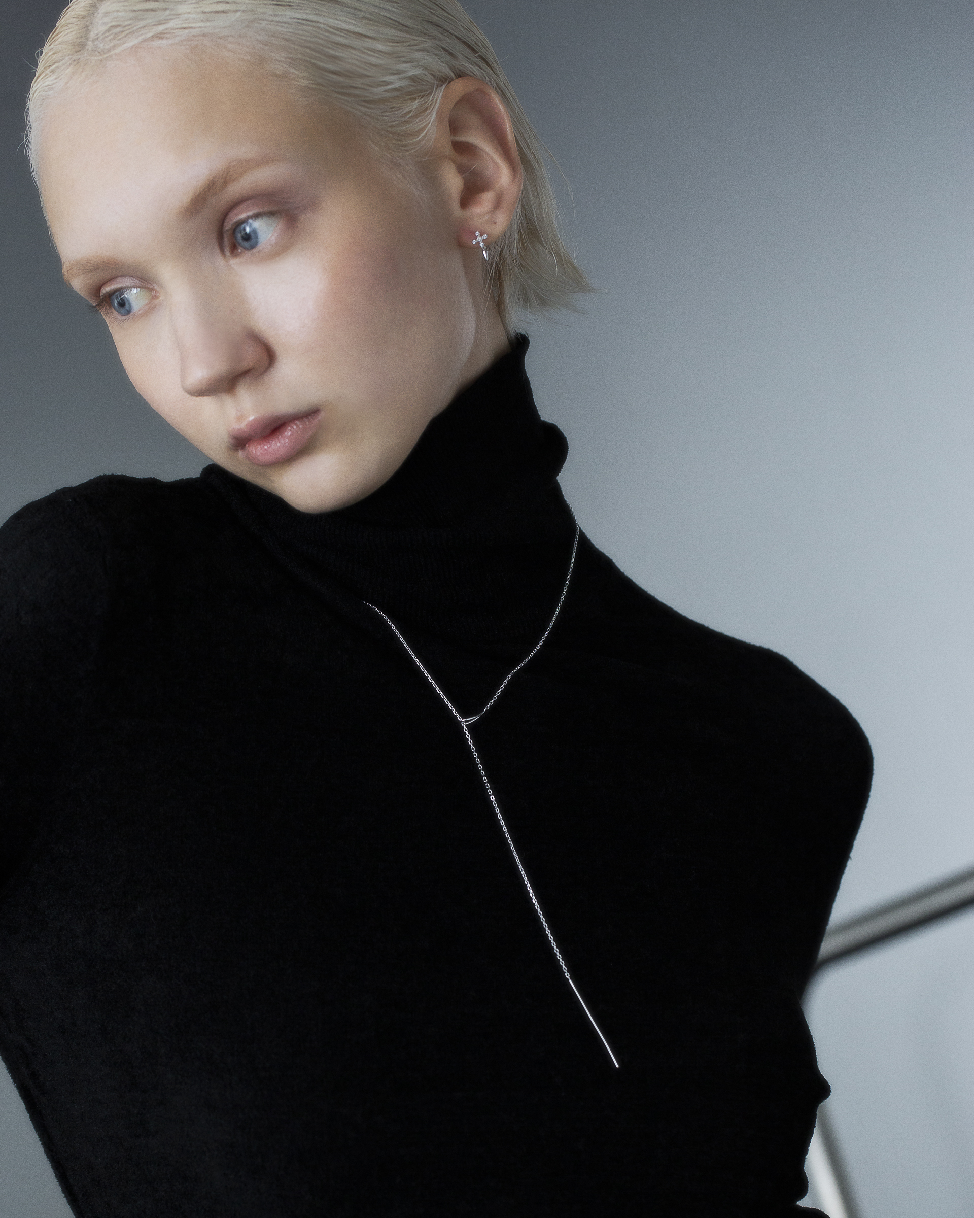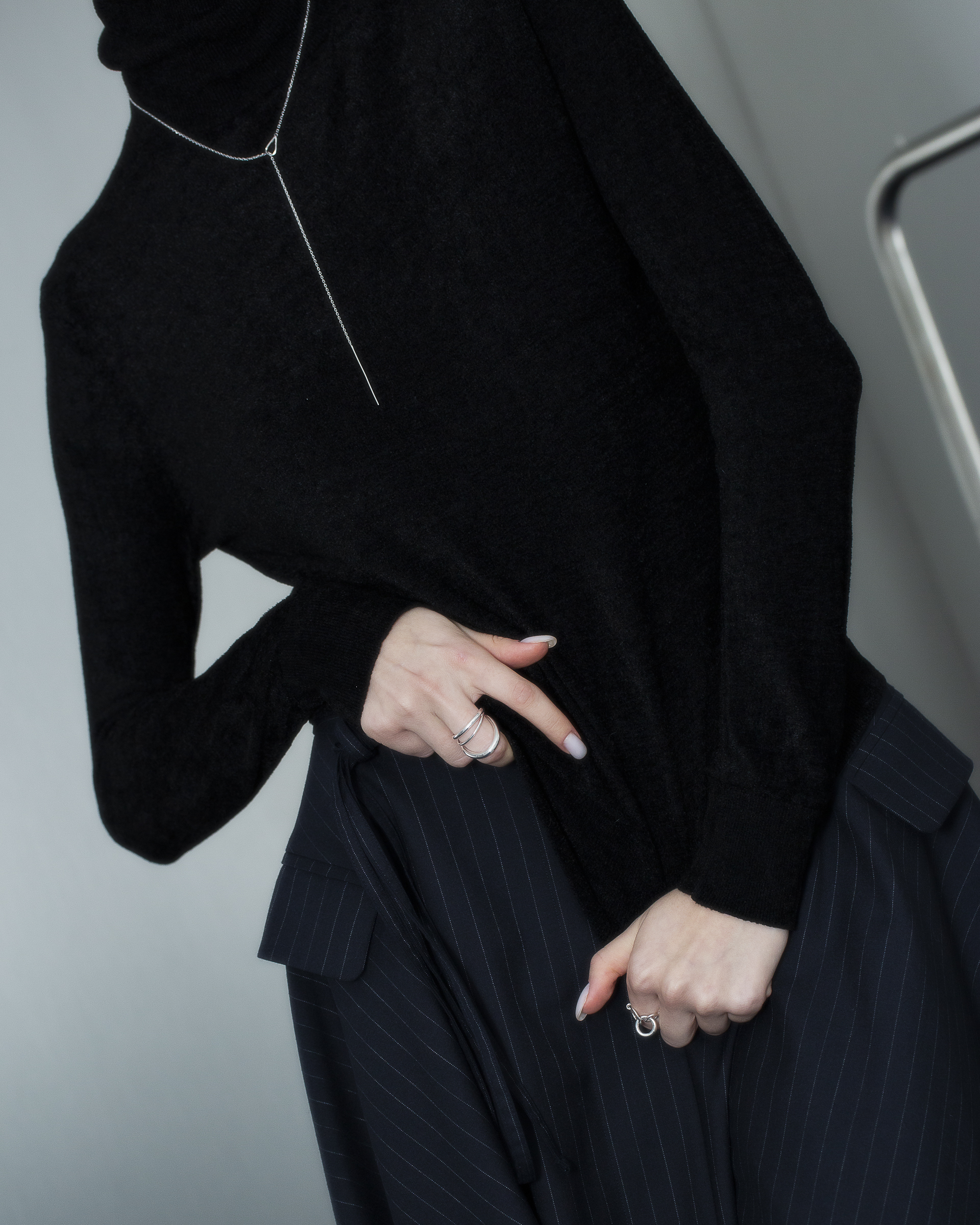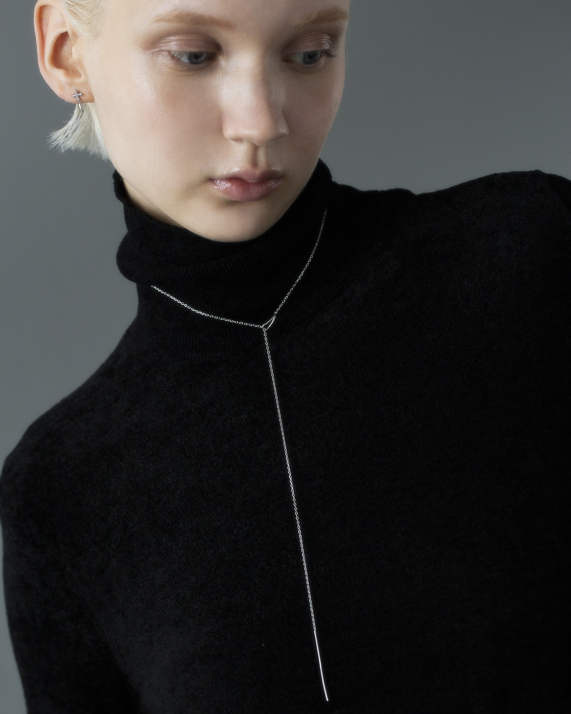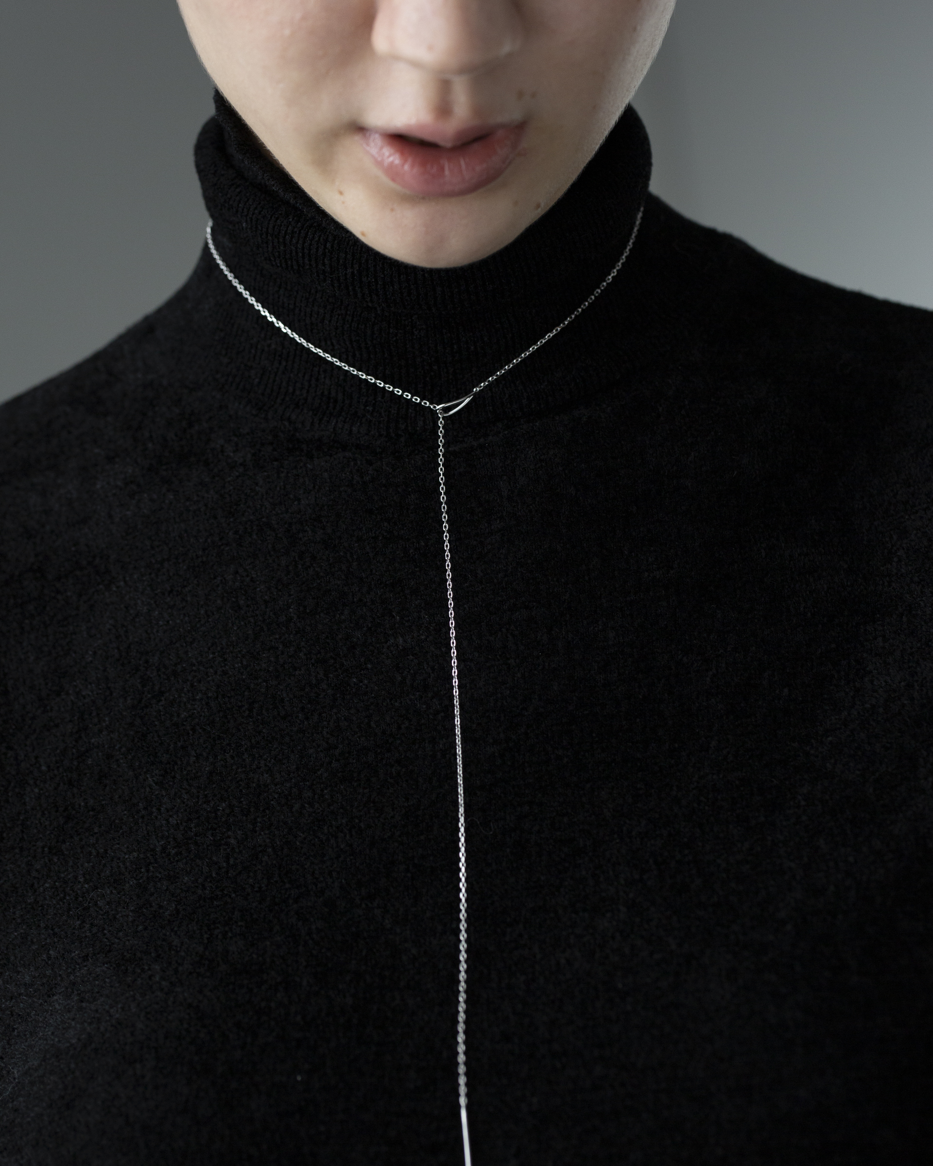 極細鍊條在被一枚流線型橢圓環暫時圈住,線條像是停頓了些許,又繼續延伸。