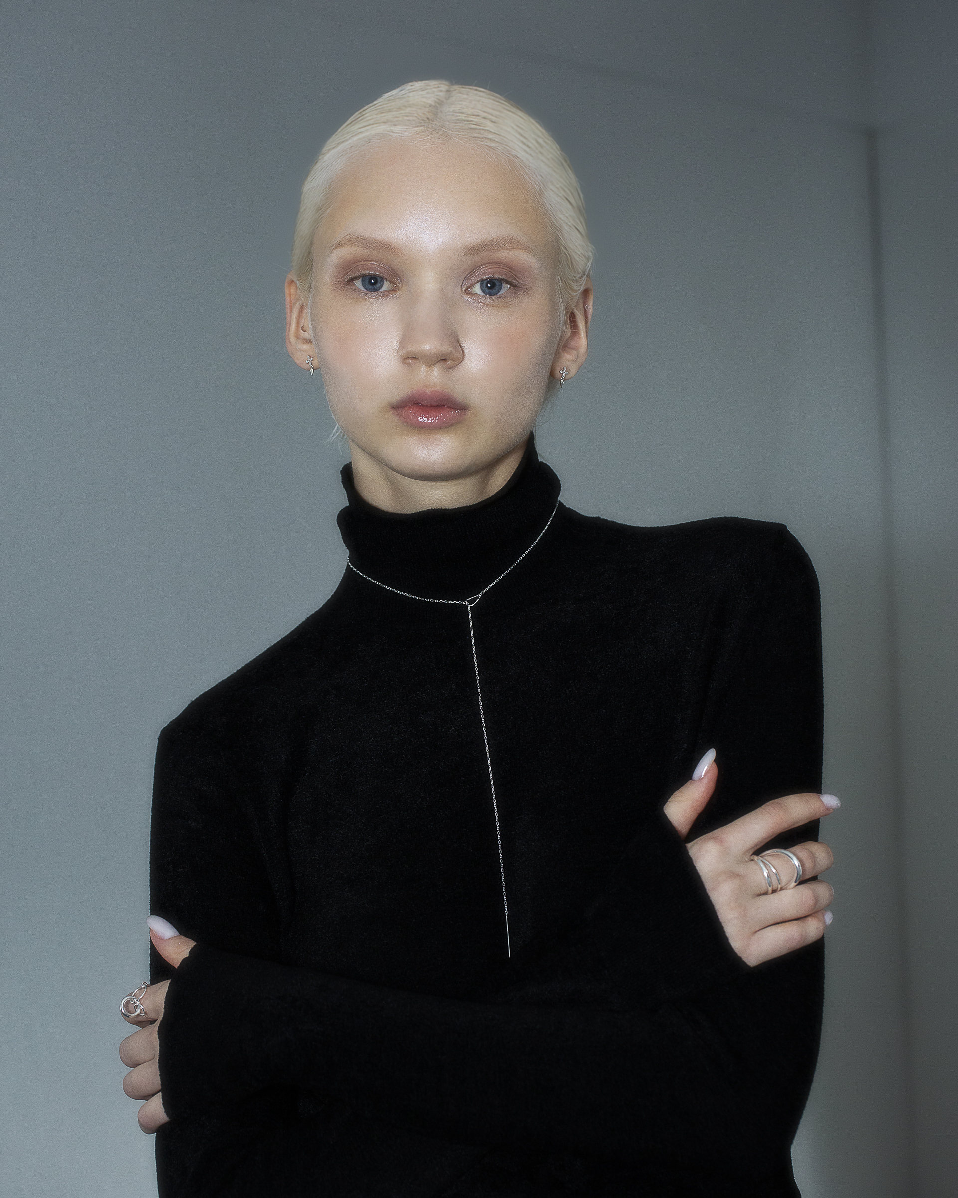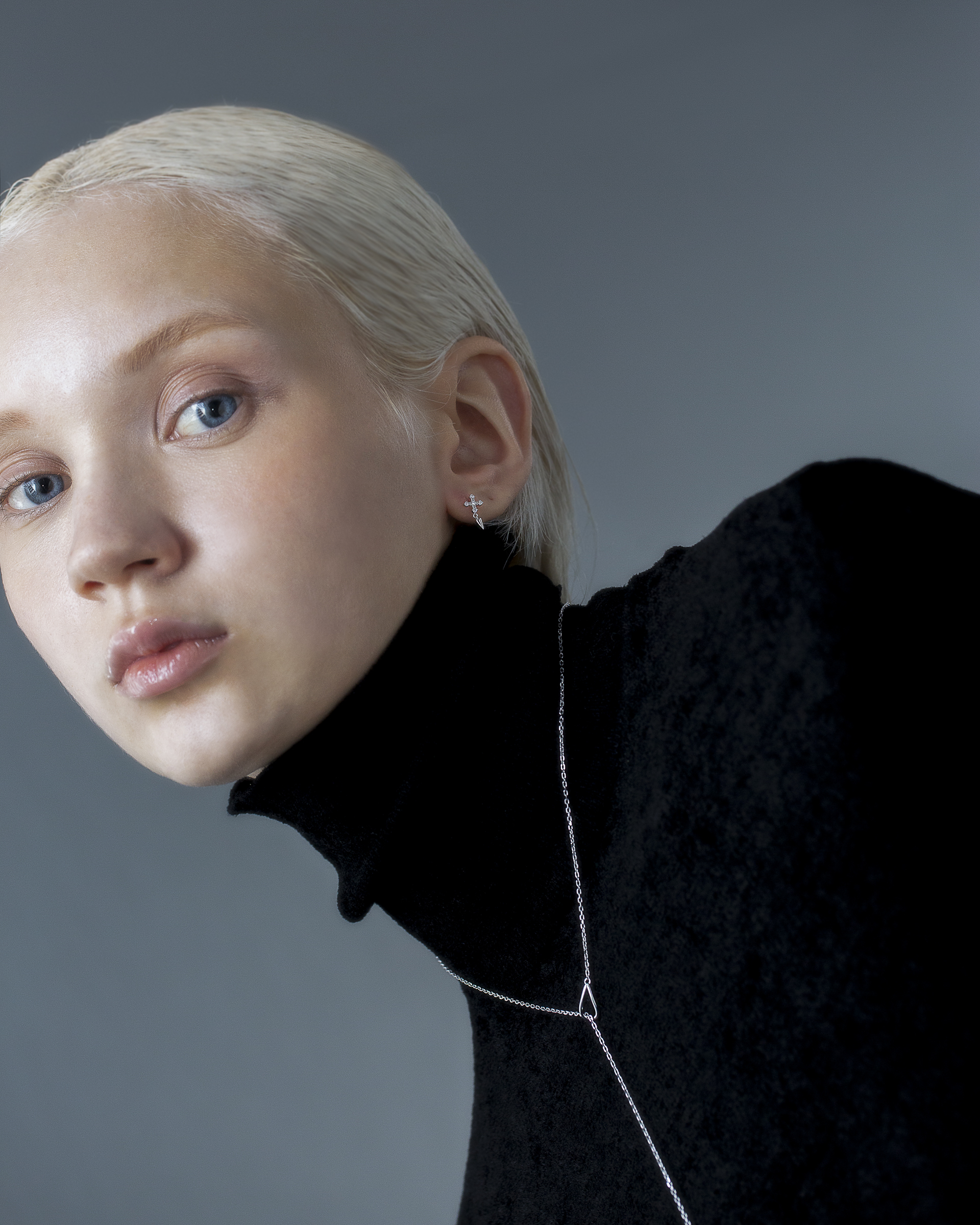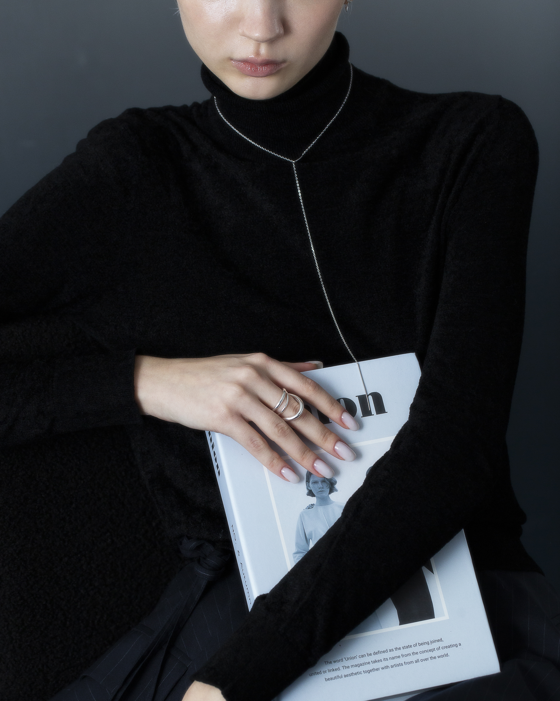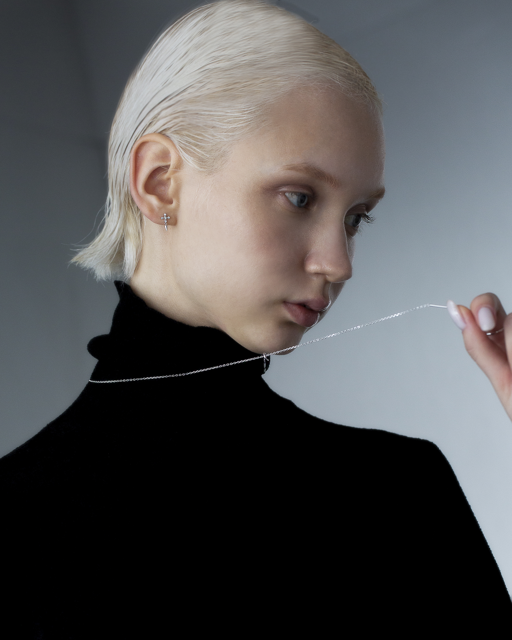 極細鍊條在被一枚流線型橢圓環暫時圈住,線條像是停頓了些許,又繼續延伸。