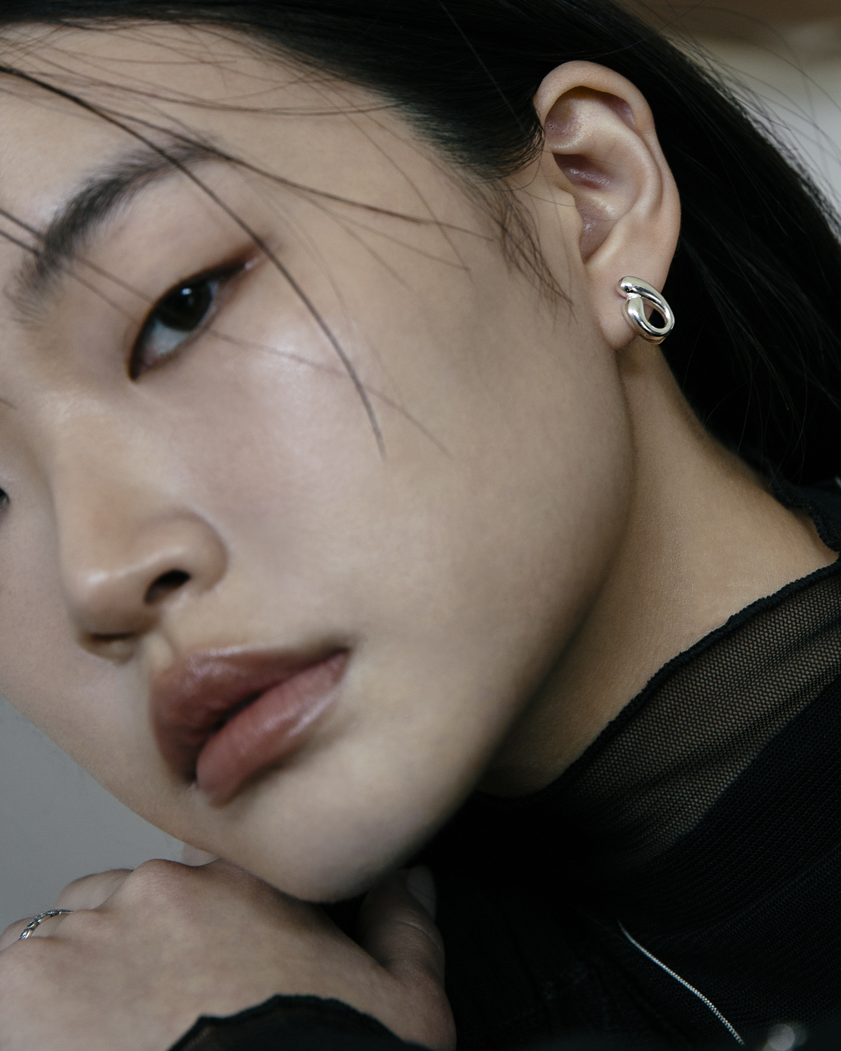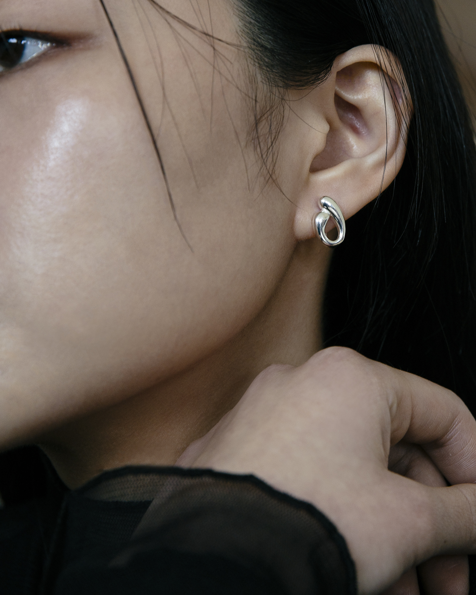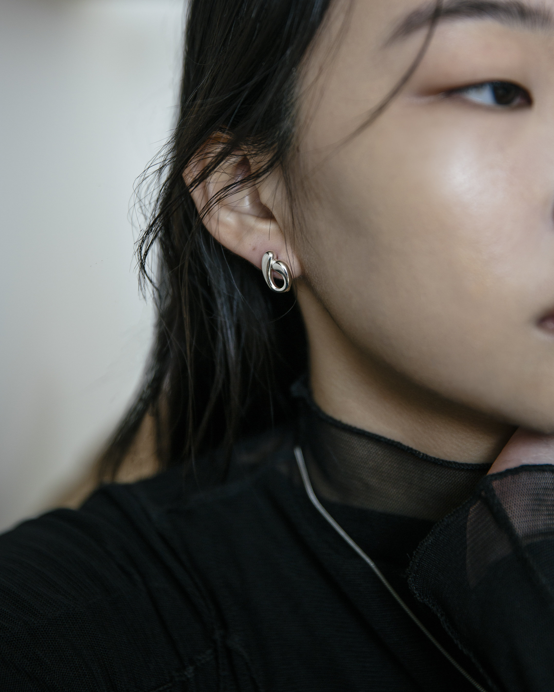 單戴即有造型,也能和圓形耳針搭配,增添層次感。