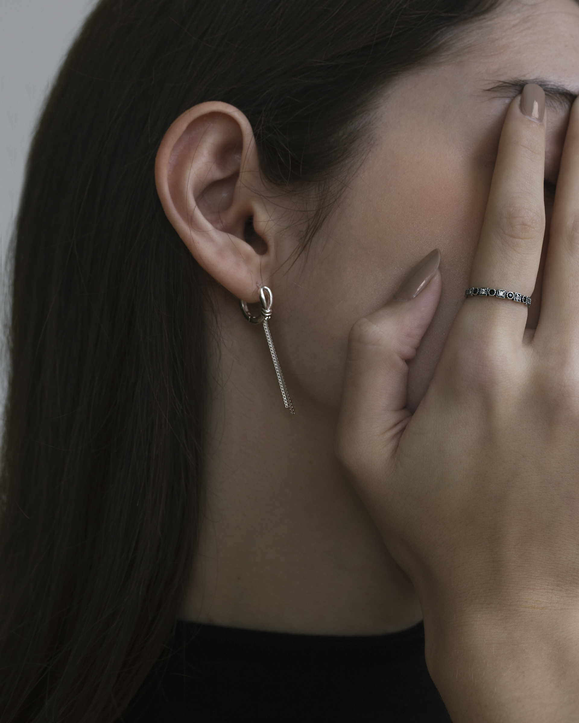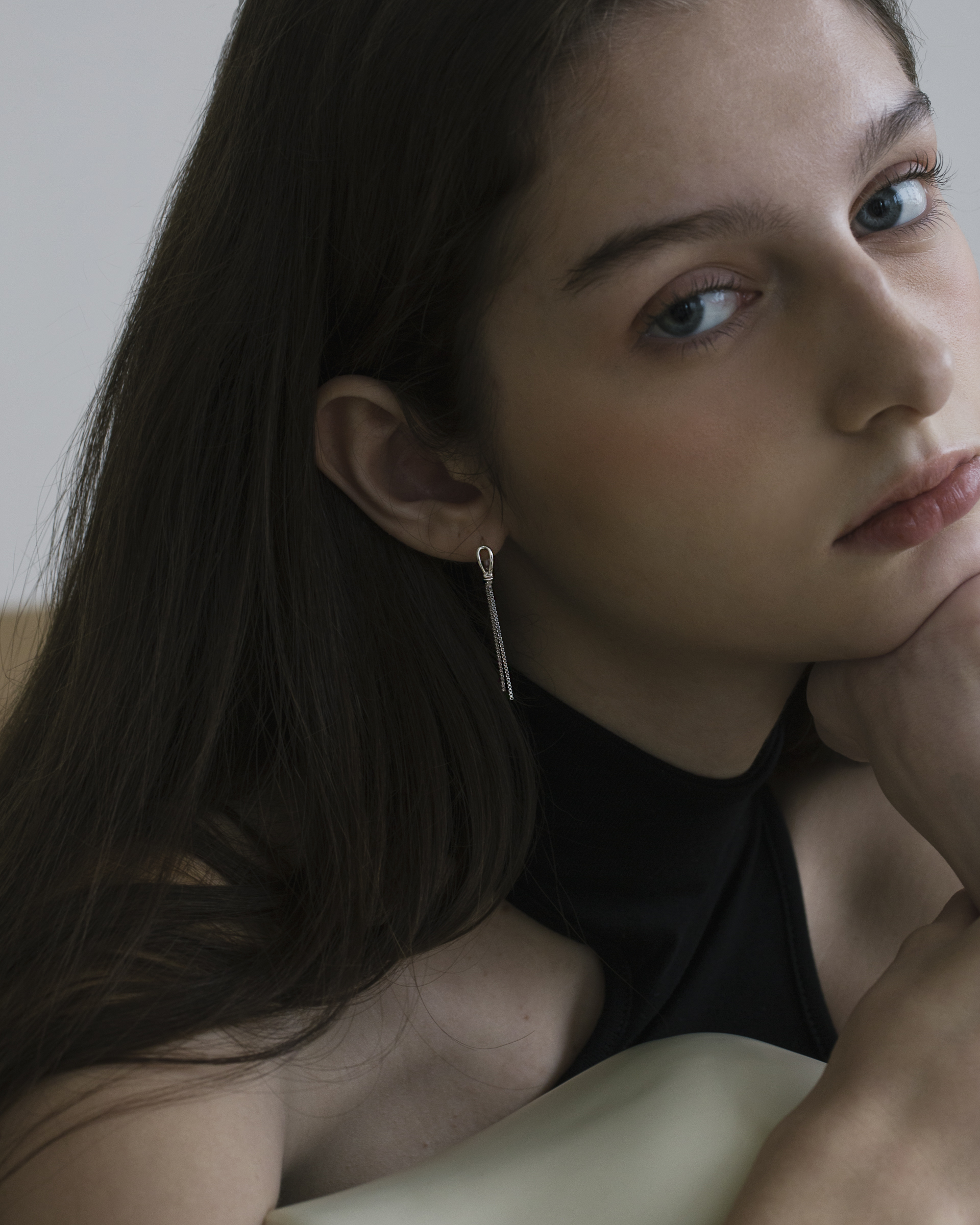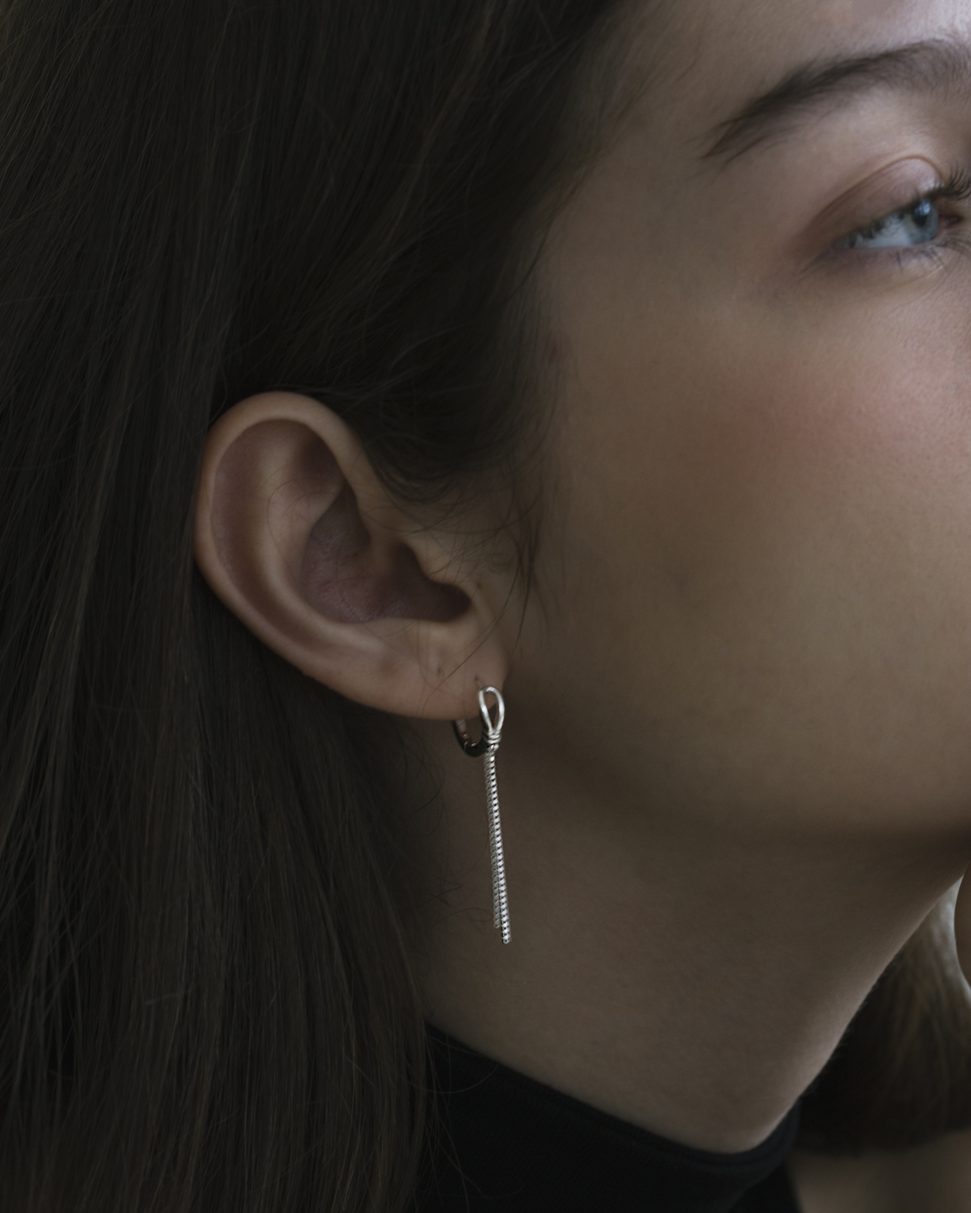 兩條筆直銀線隨動作微晃,像情緒經過理性剪裁後留下的餘韻。