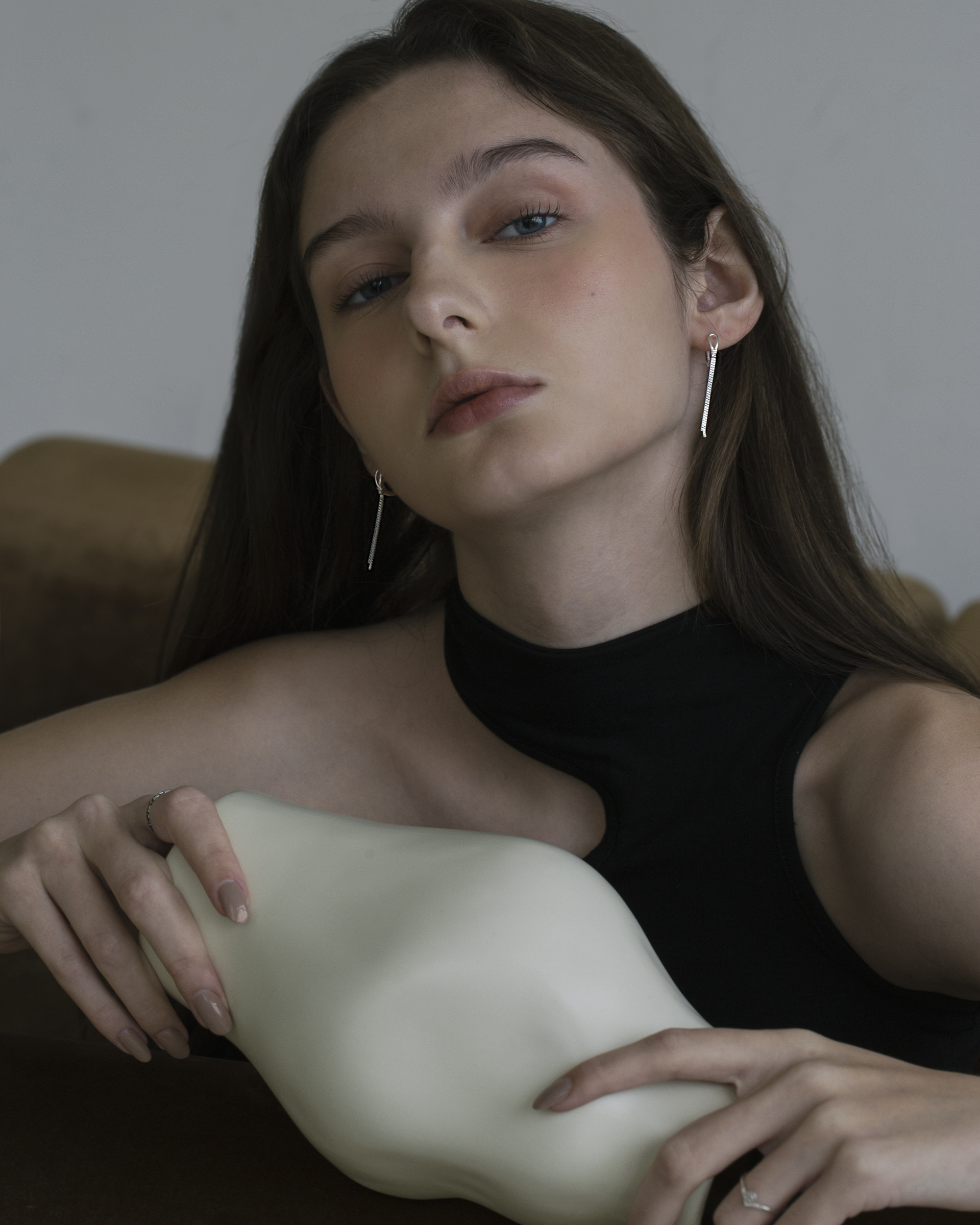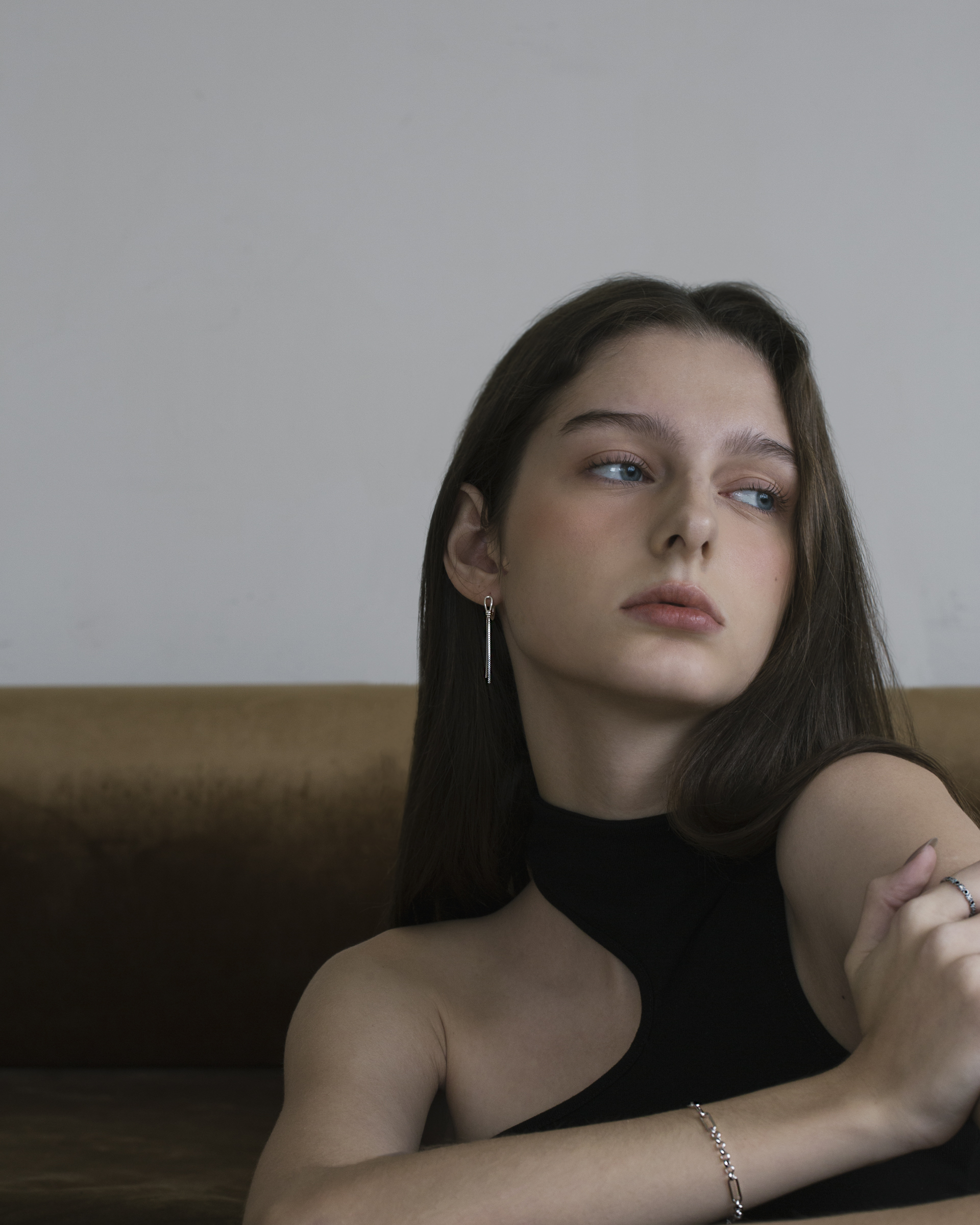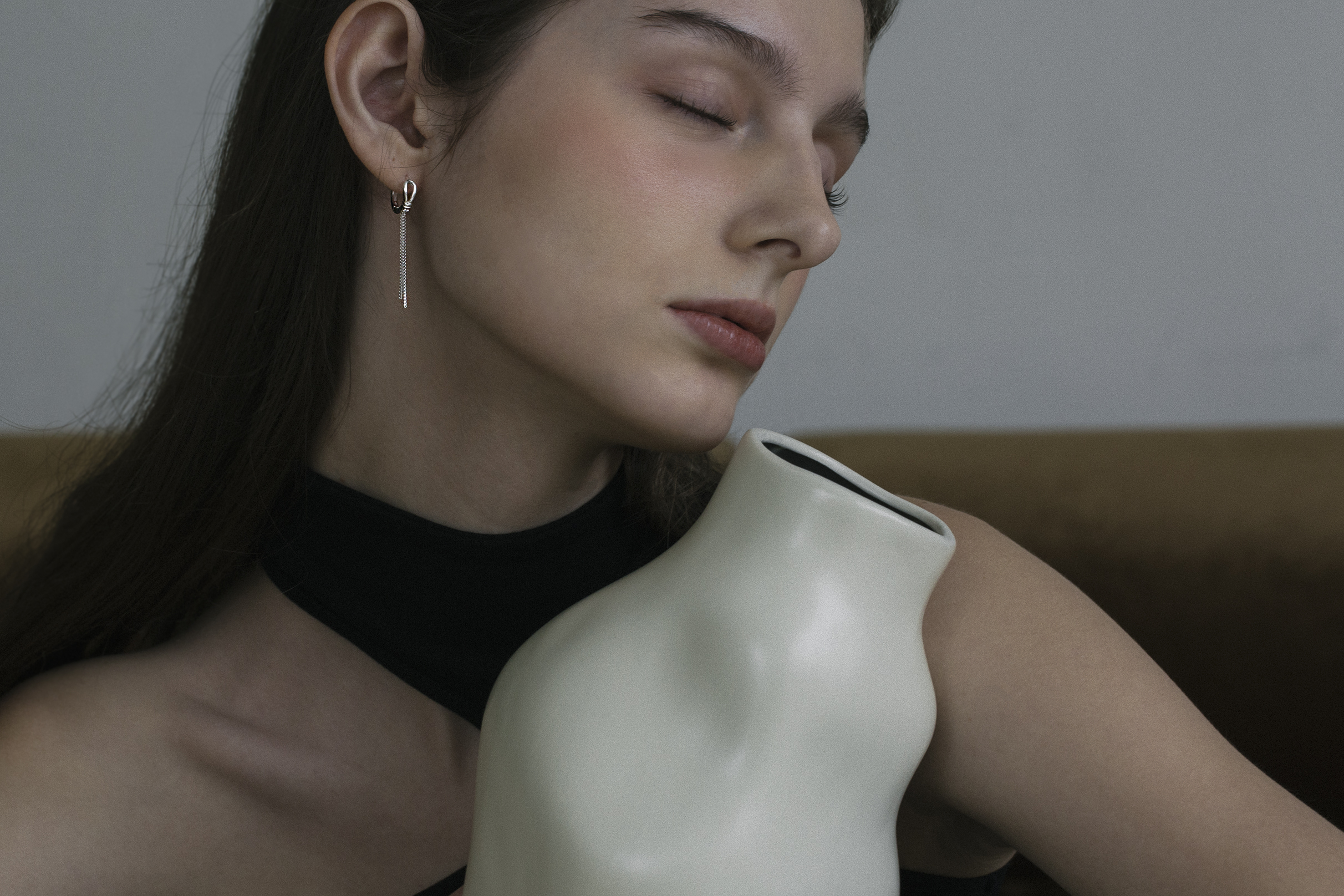 兩條筆直銀線隨動作微晃,像情緒經過理性剪裁後留下的餘韻。