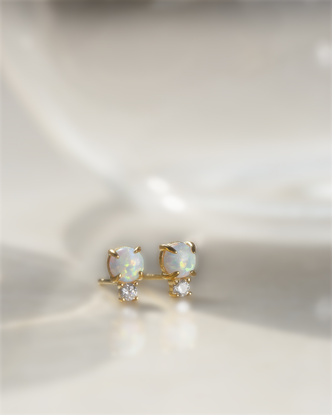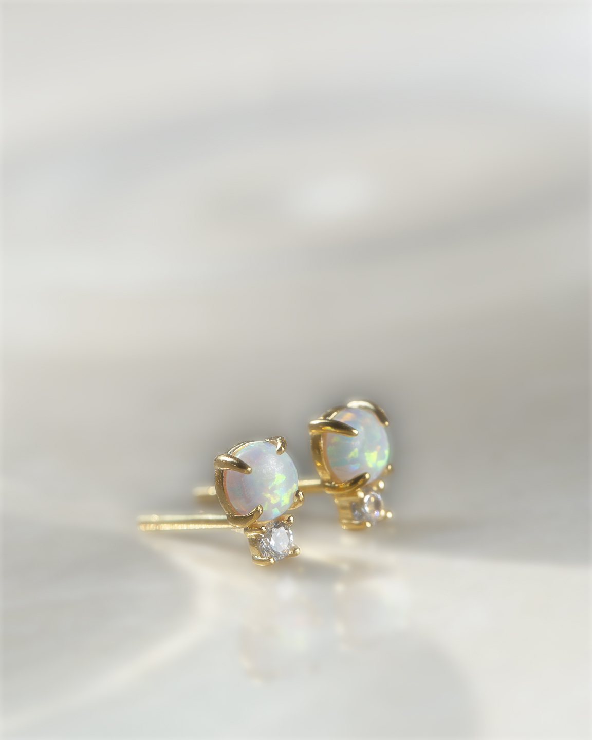 一顆蛋白石與一顆方晶鋯石,構成小巧但光感豐富的對比。