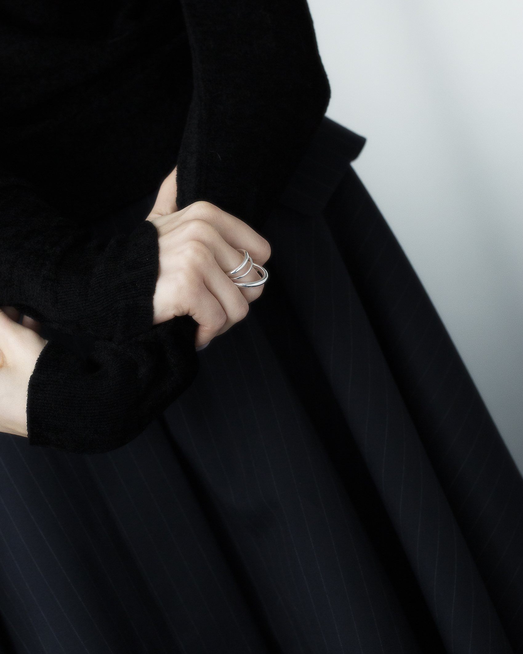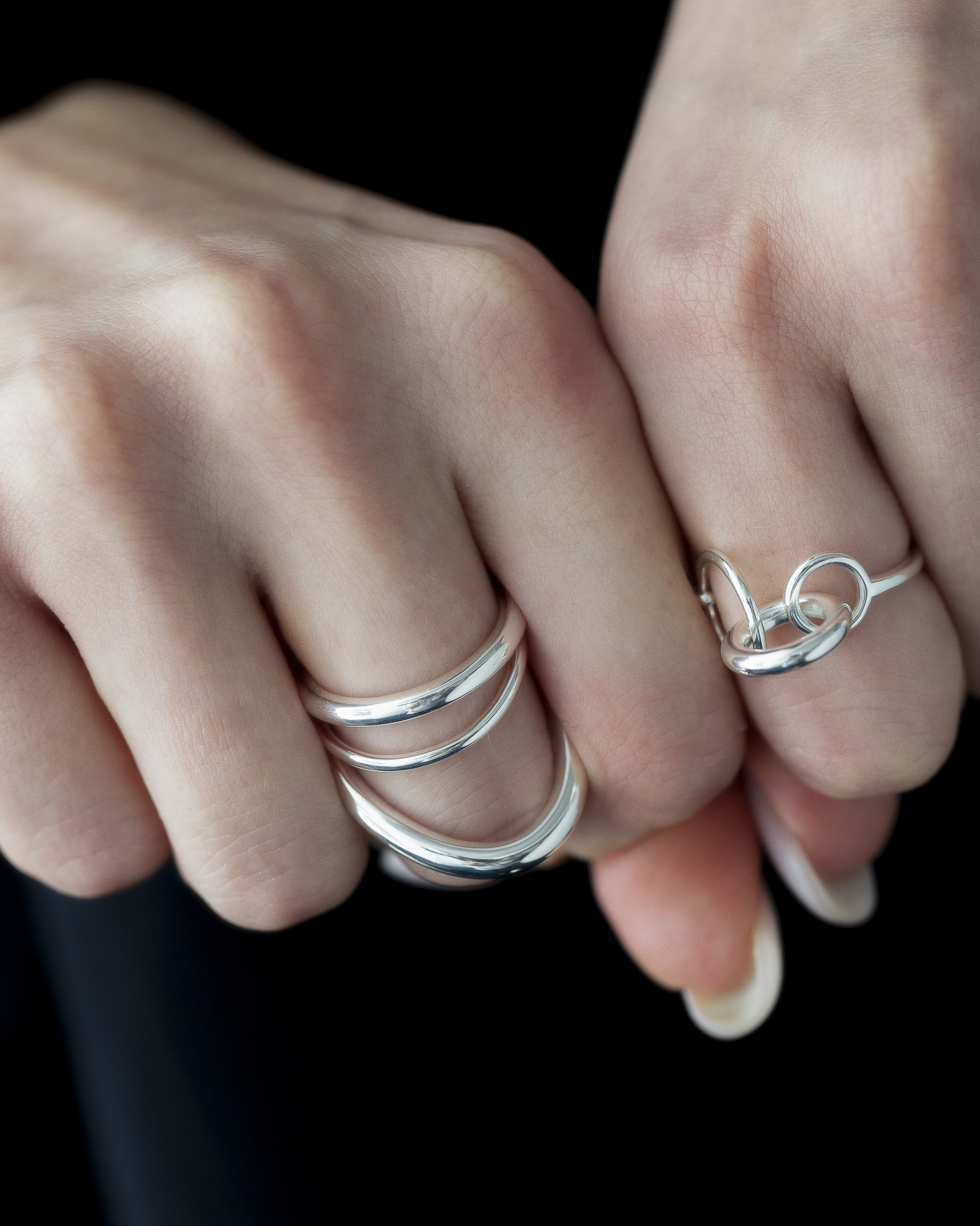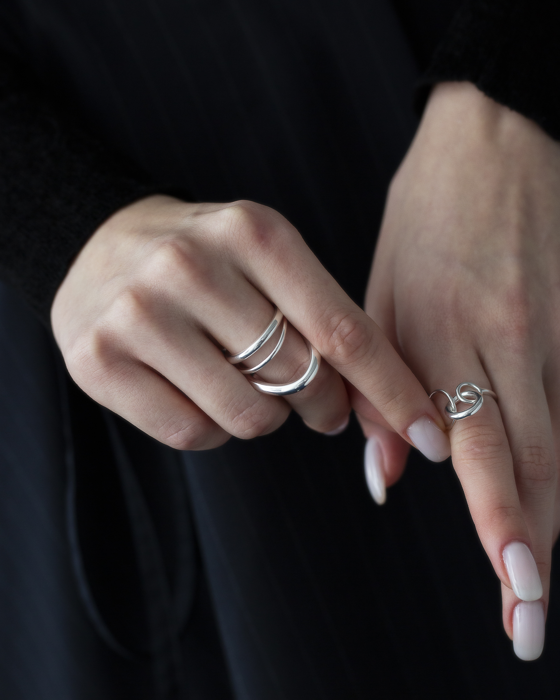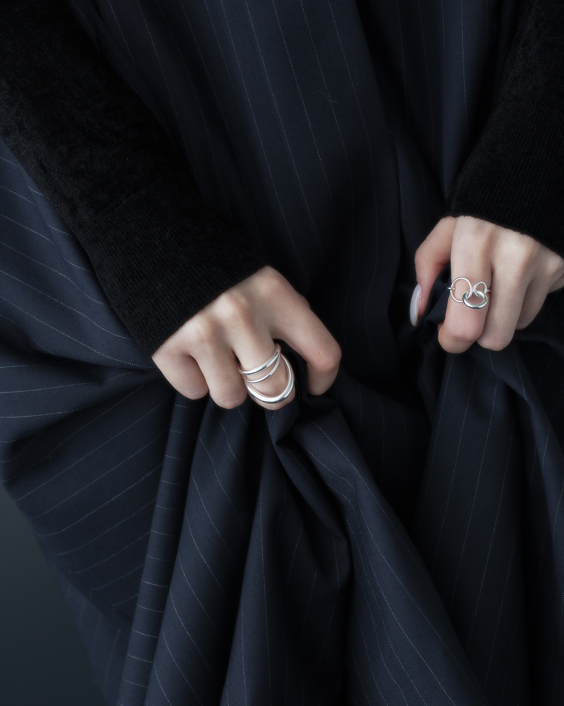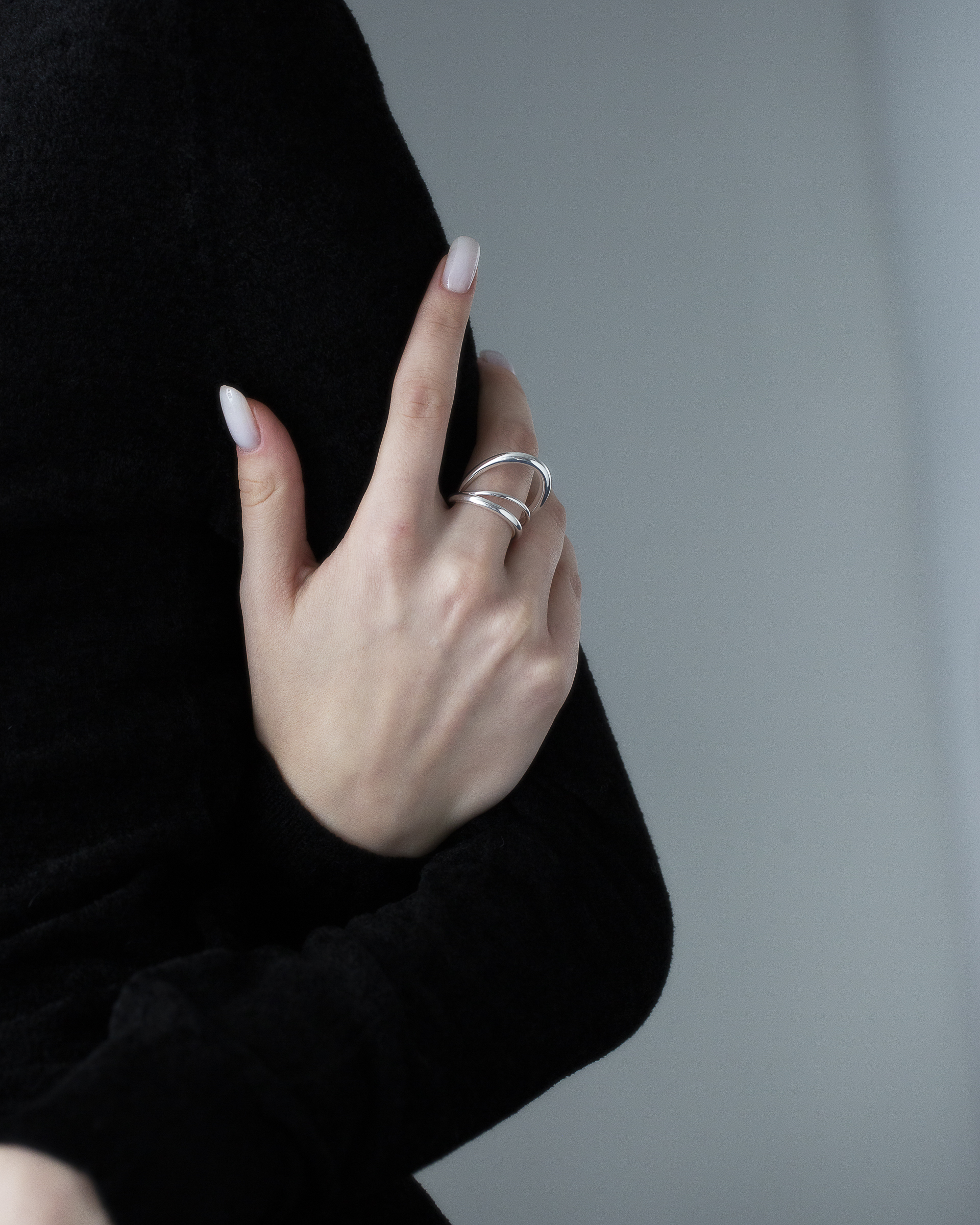 不同粗細的純銀圓潤線條戒身,層層流動與起伏,結構簡潔又帶有立體層次。