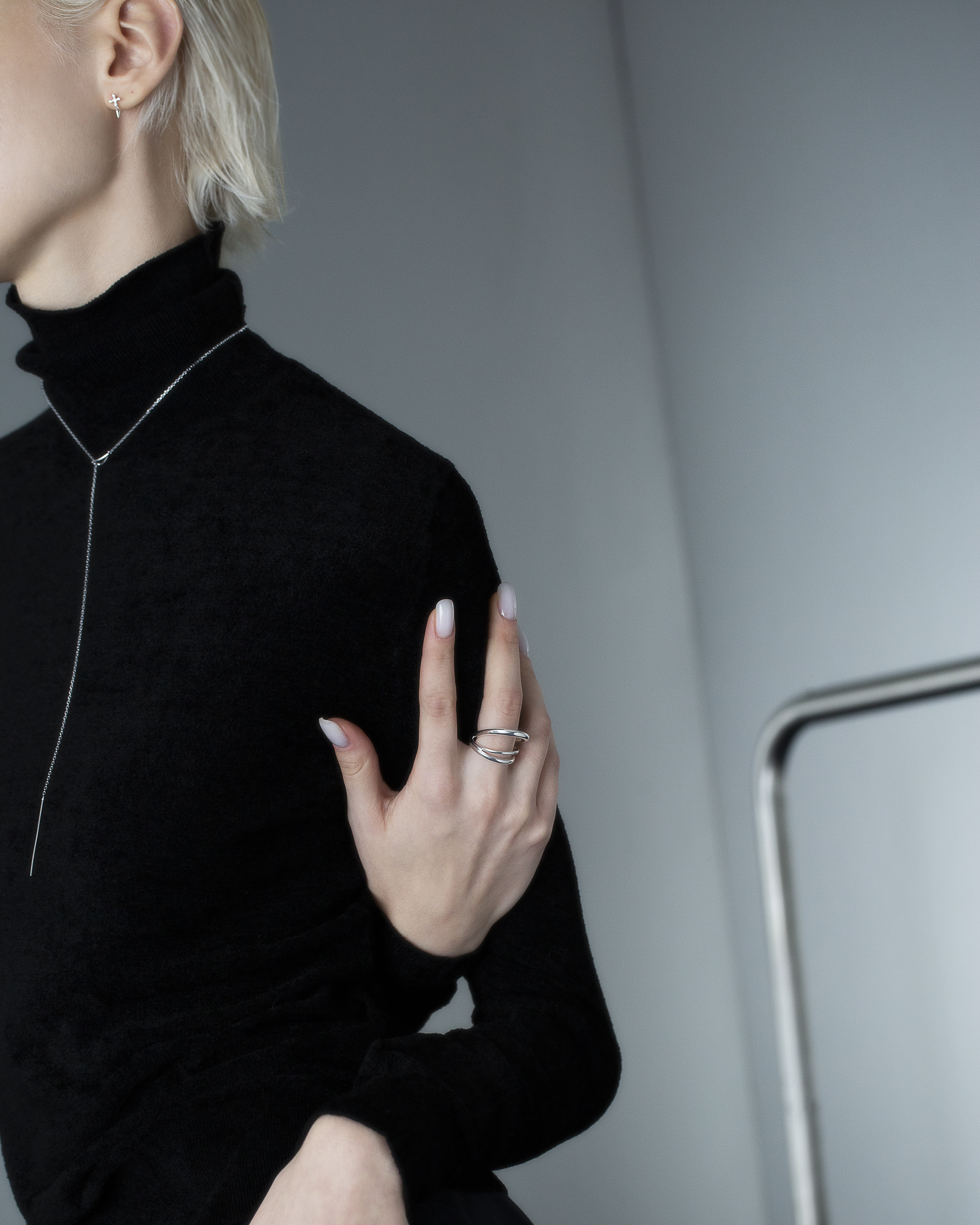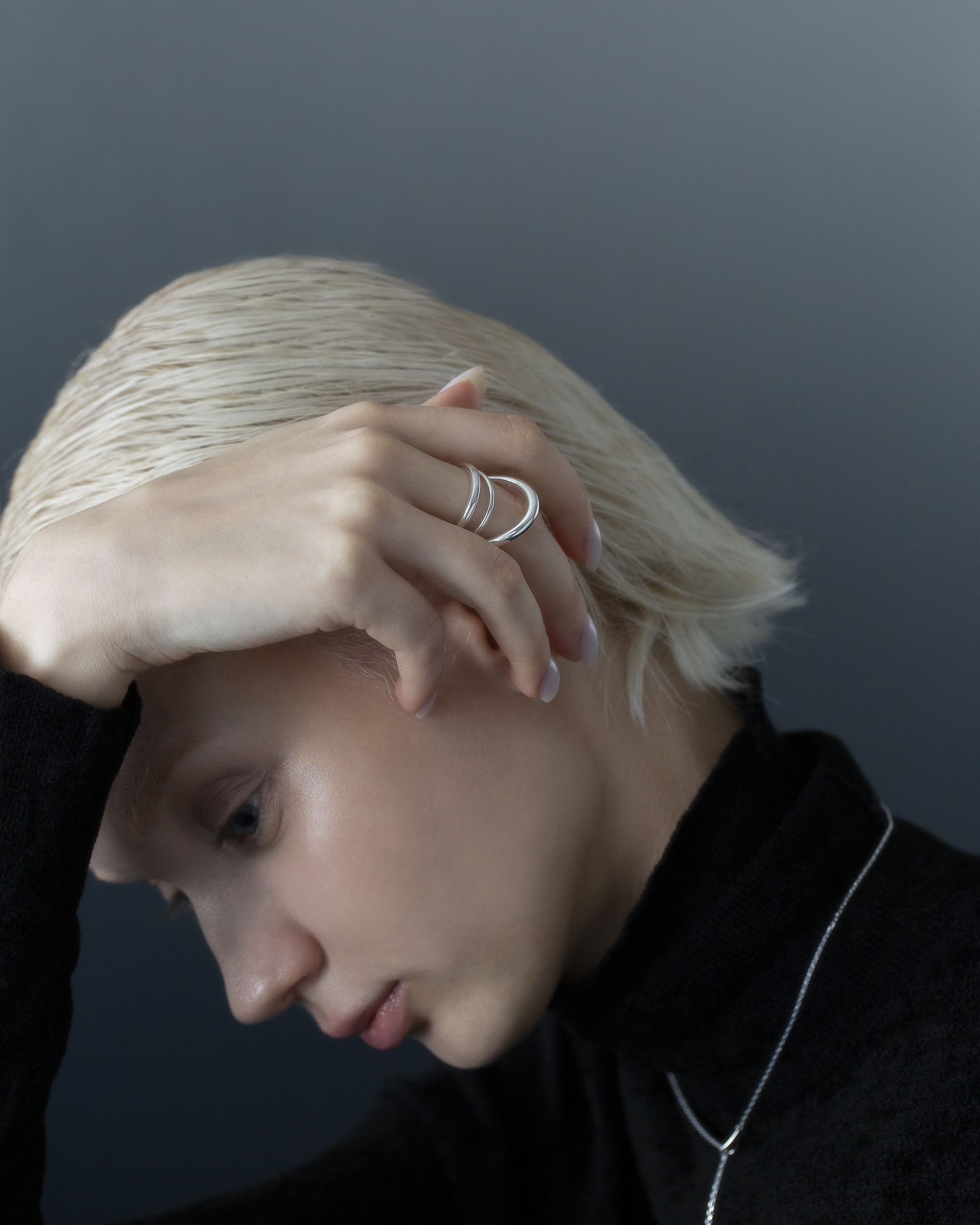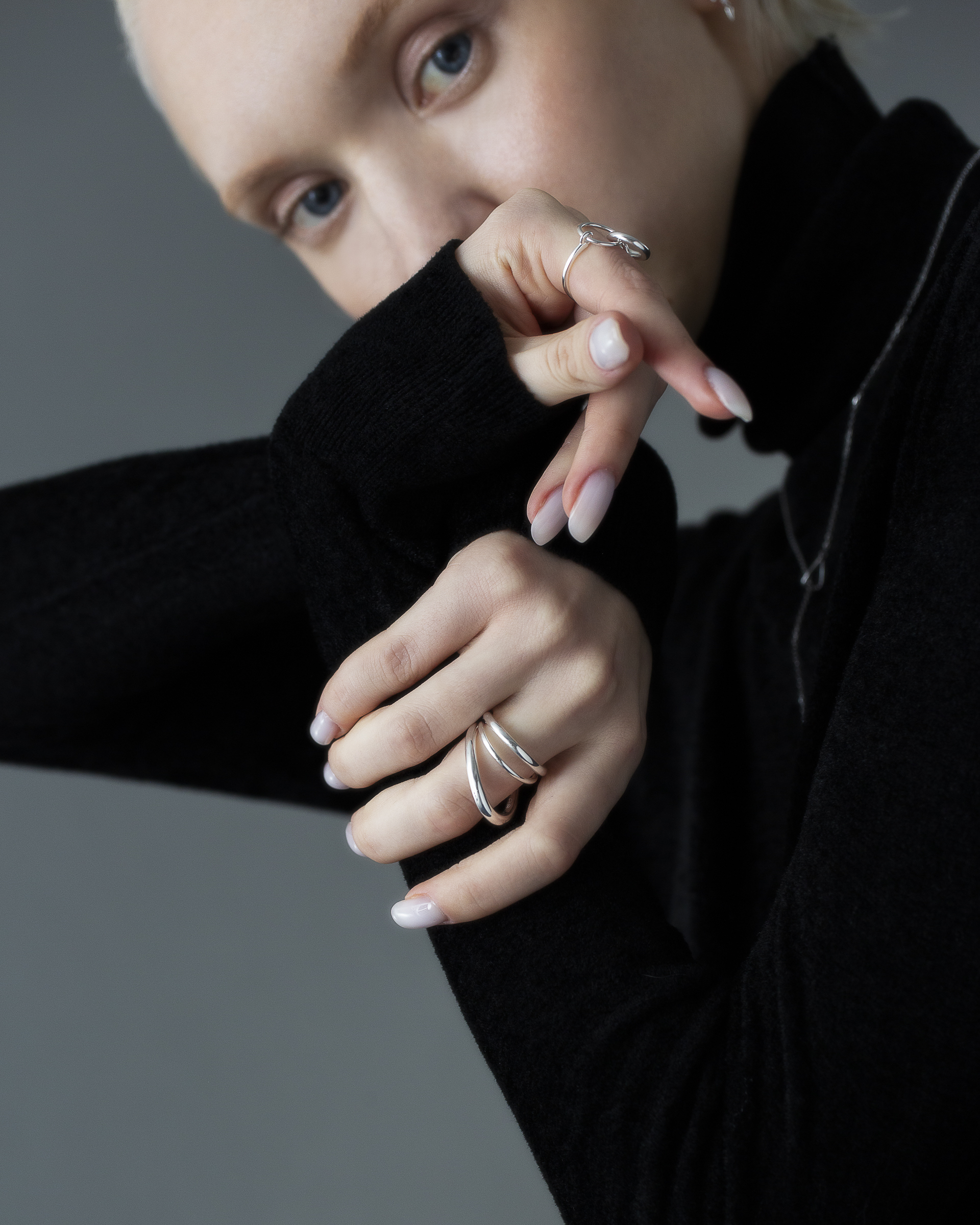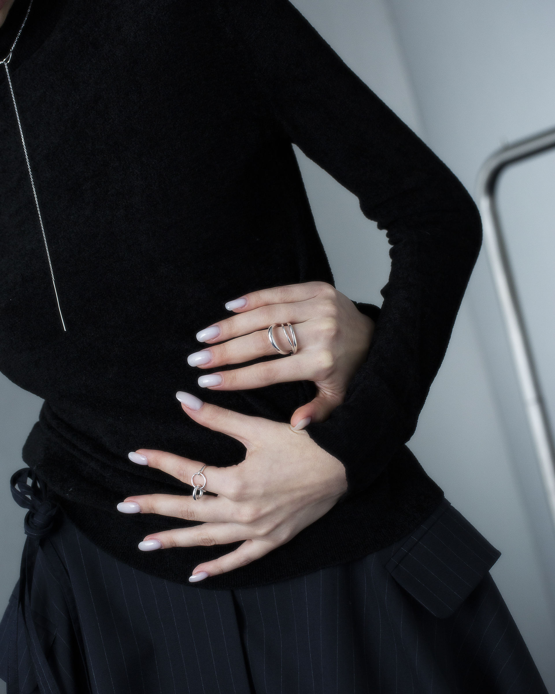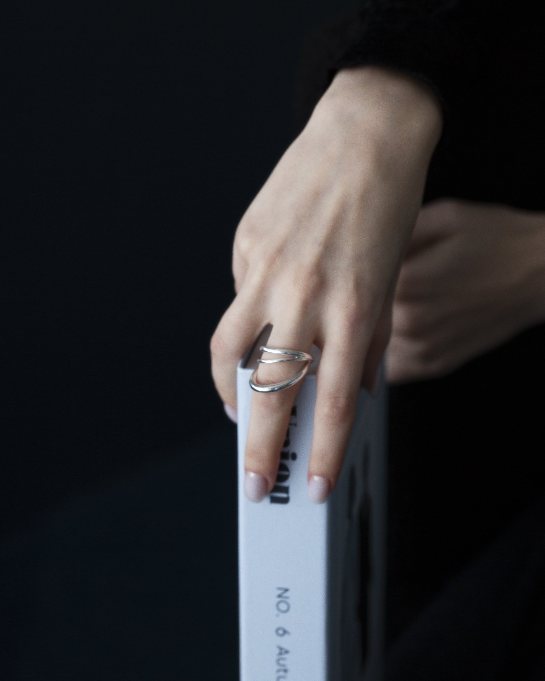 不同粗細的純銀圓潤線條戒身,層層流動與起伏,結構簡潔又帶有立體層次。