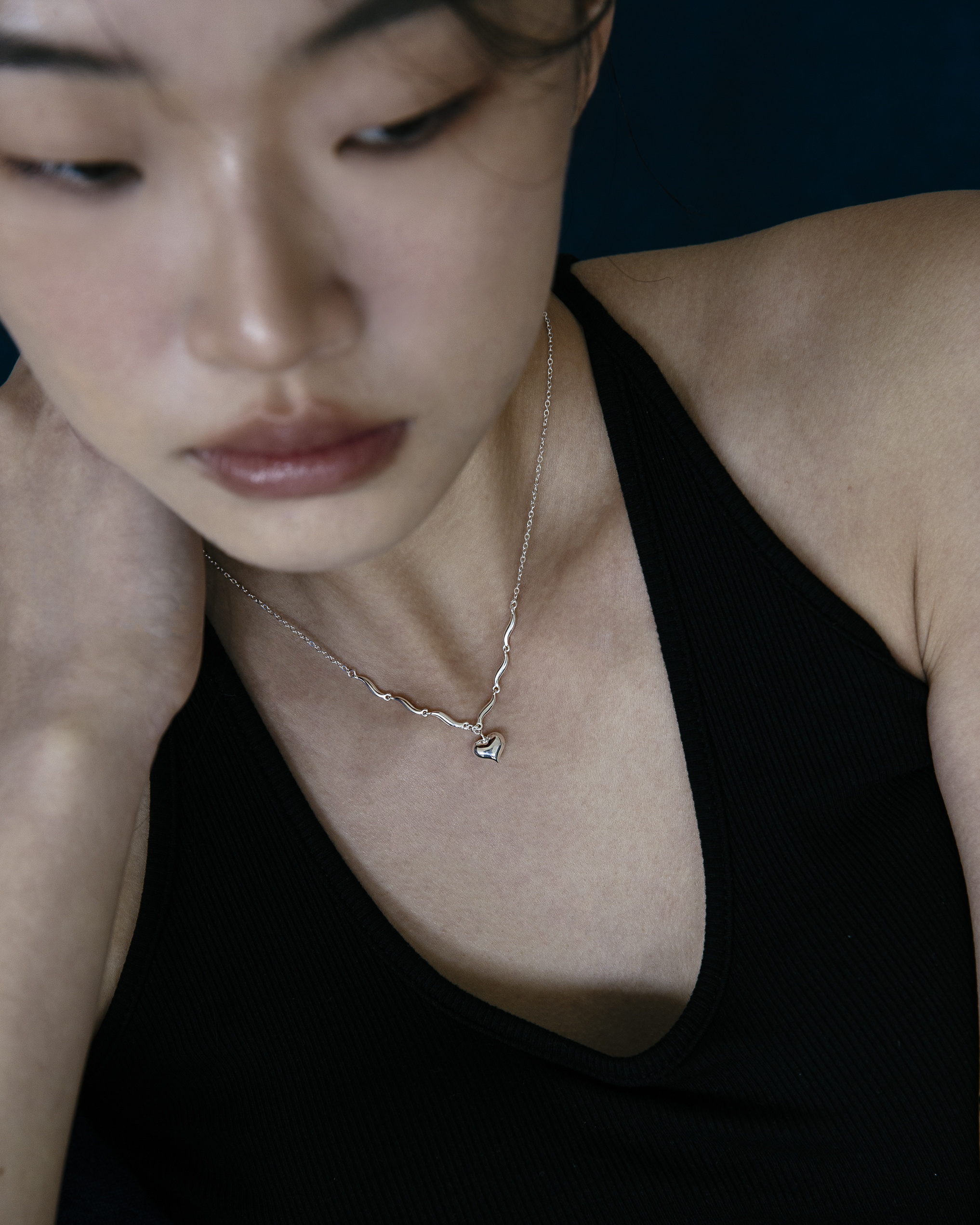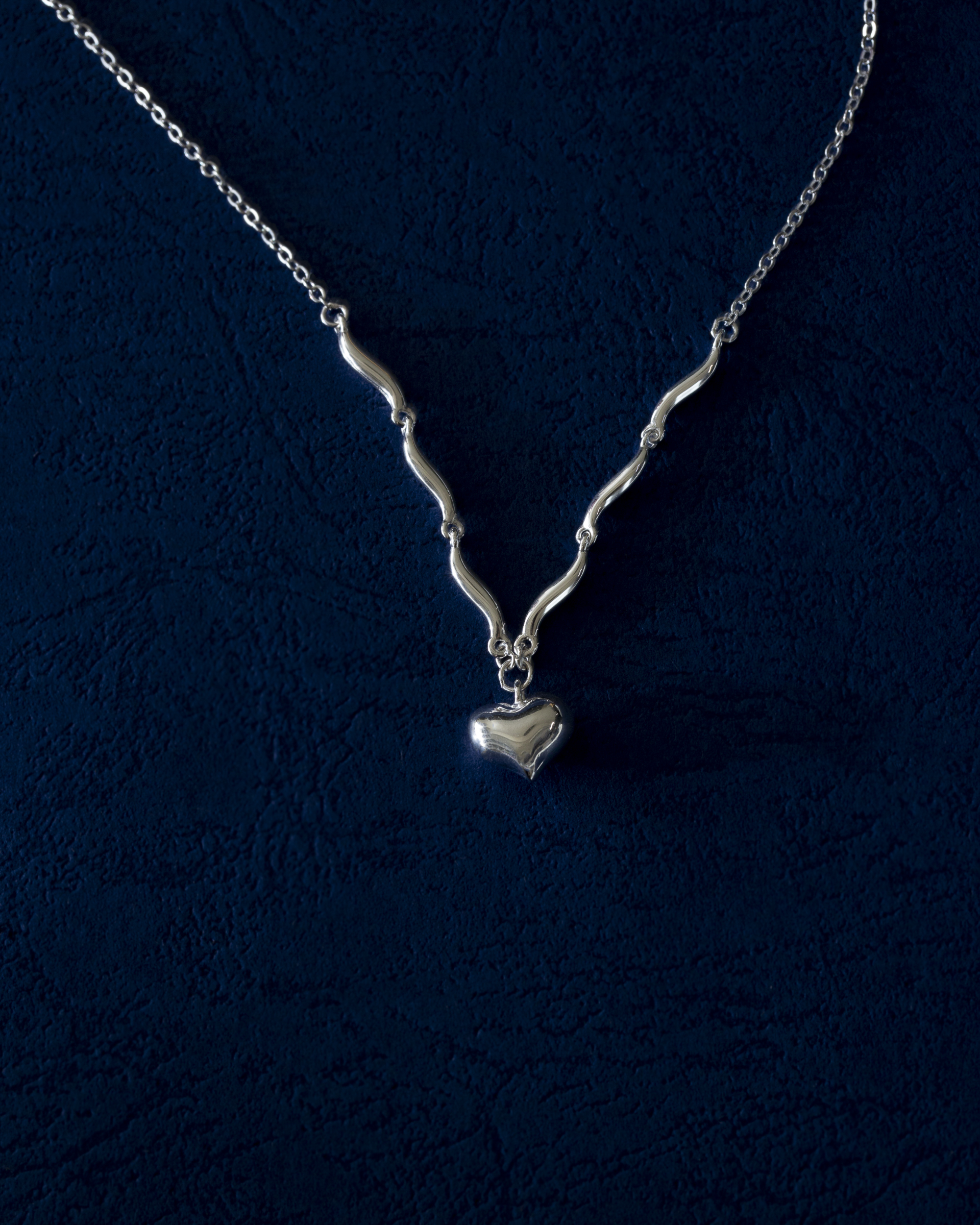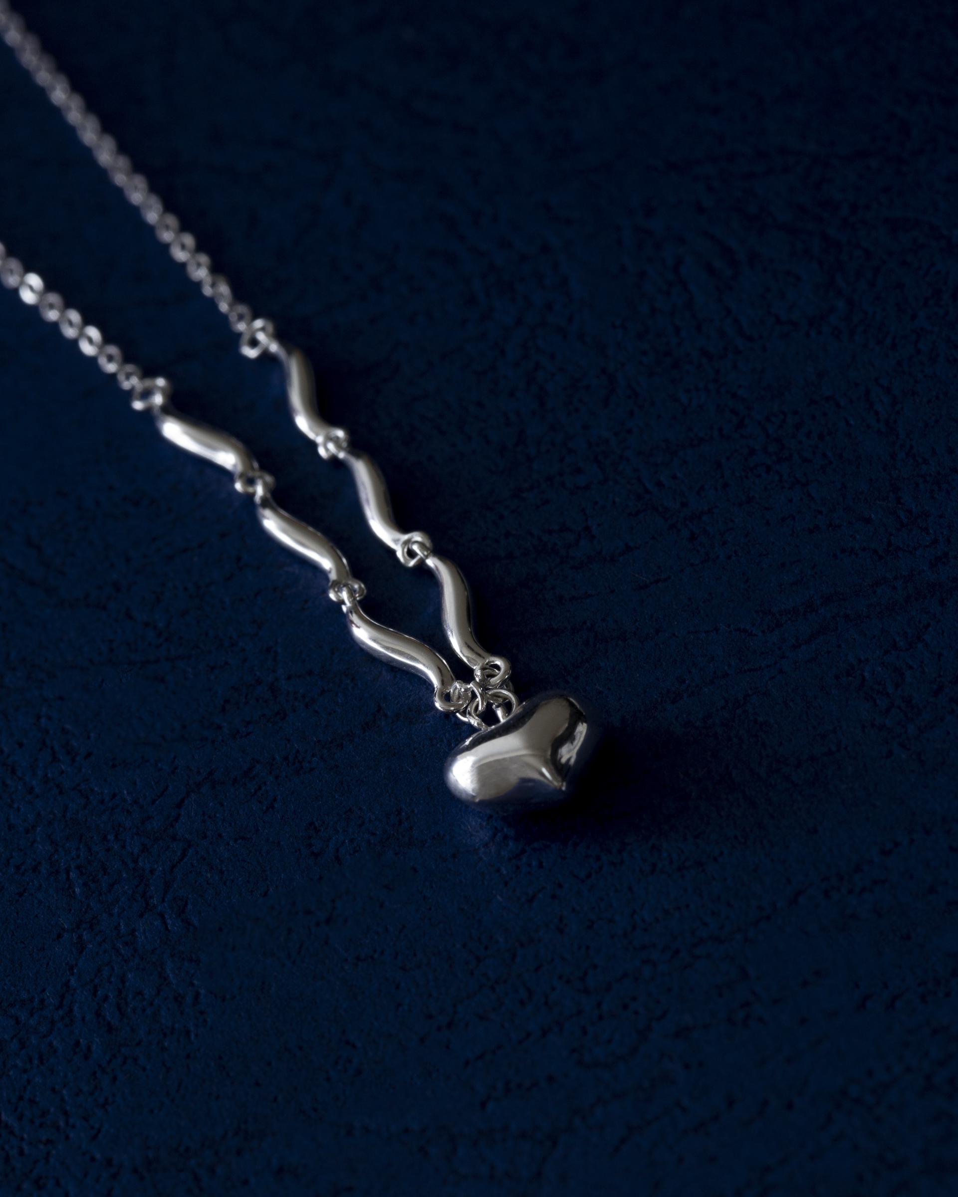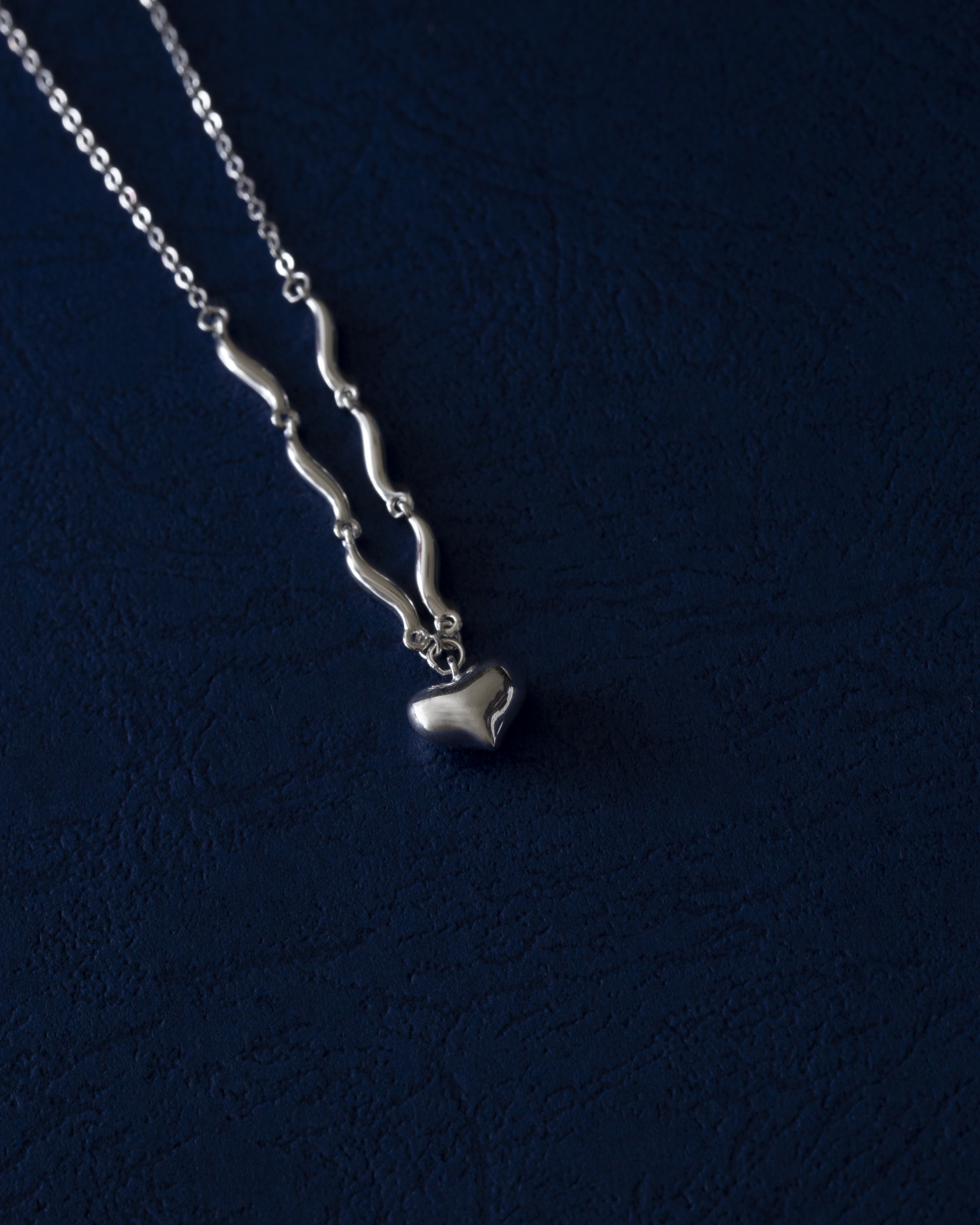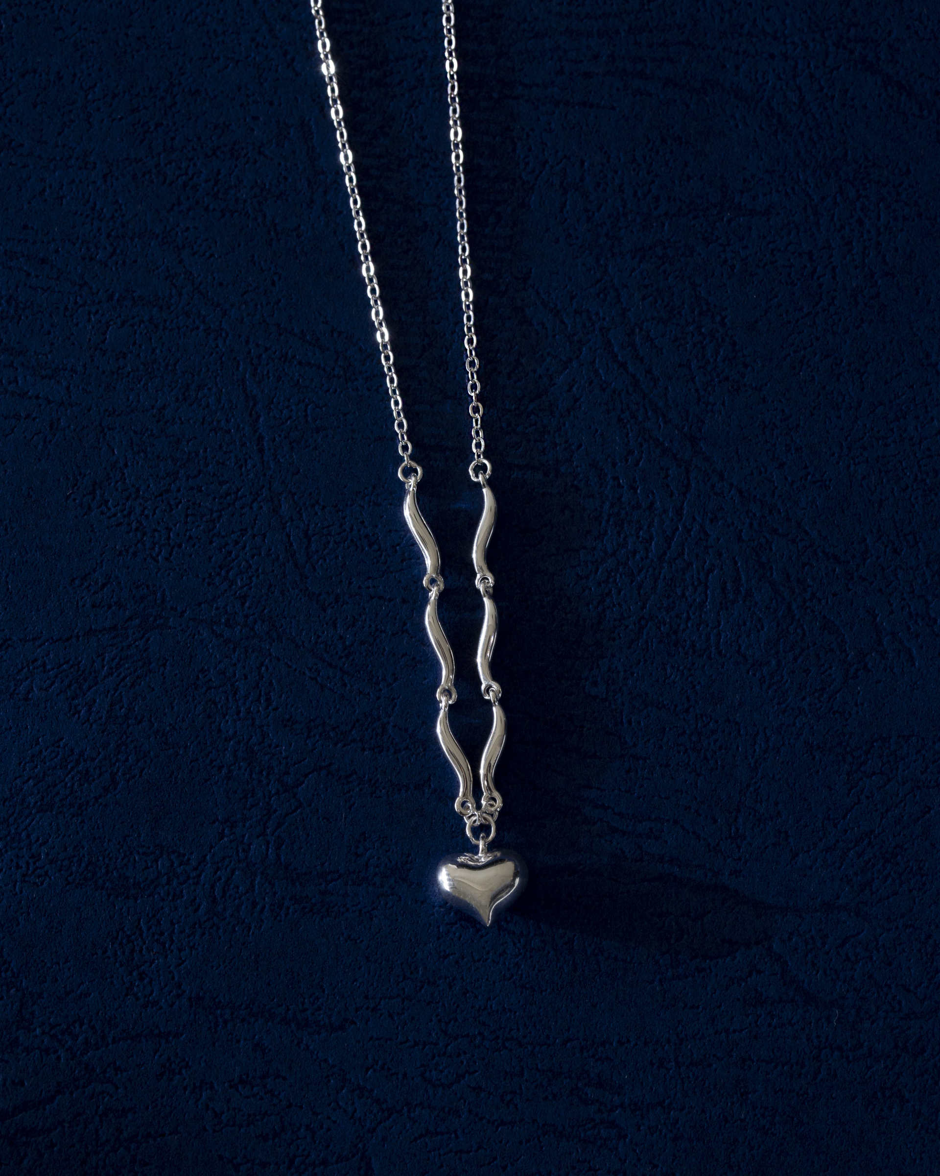以波浪鍊節連結立體愛心墜飾,
