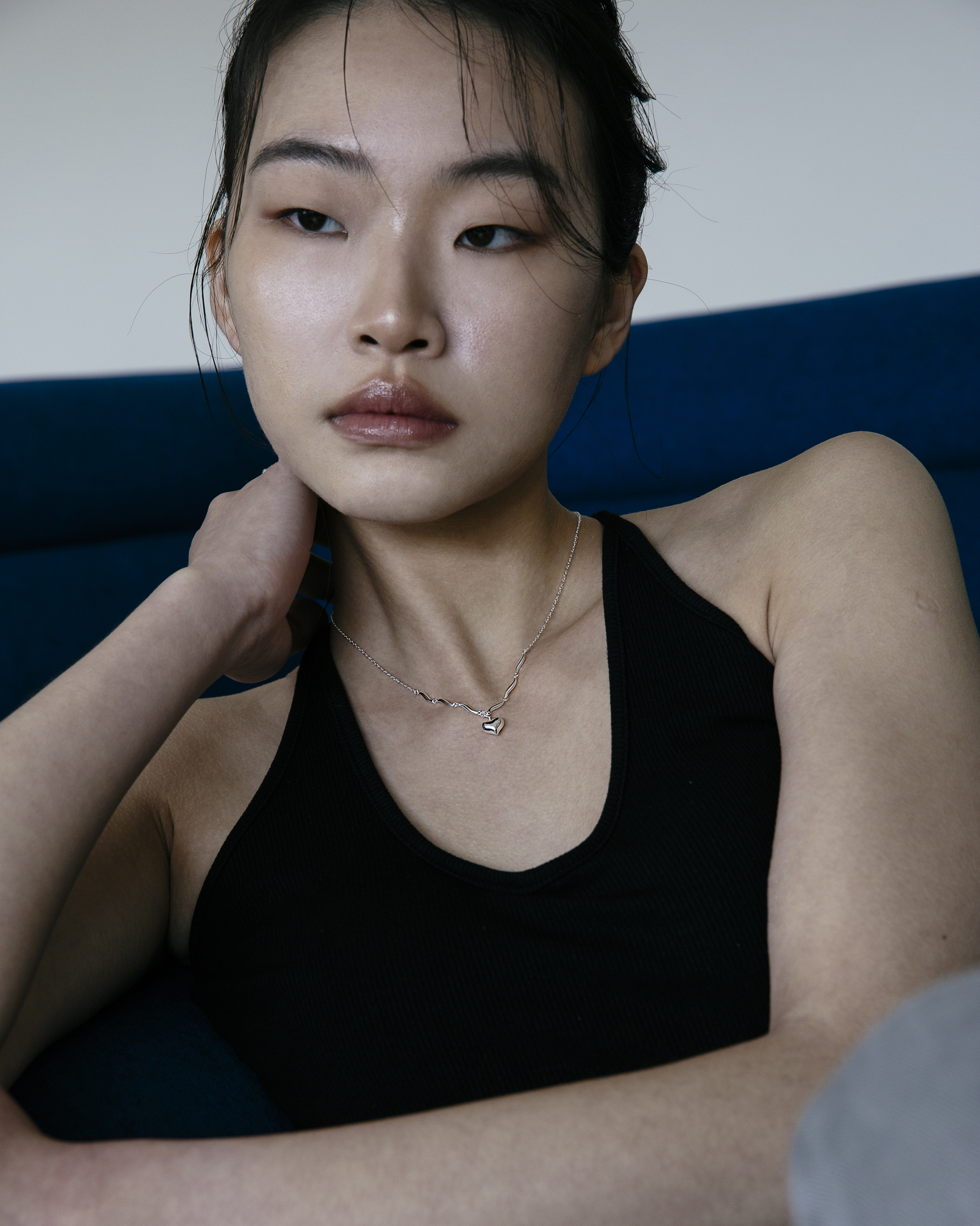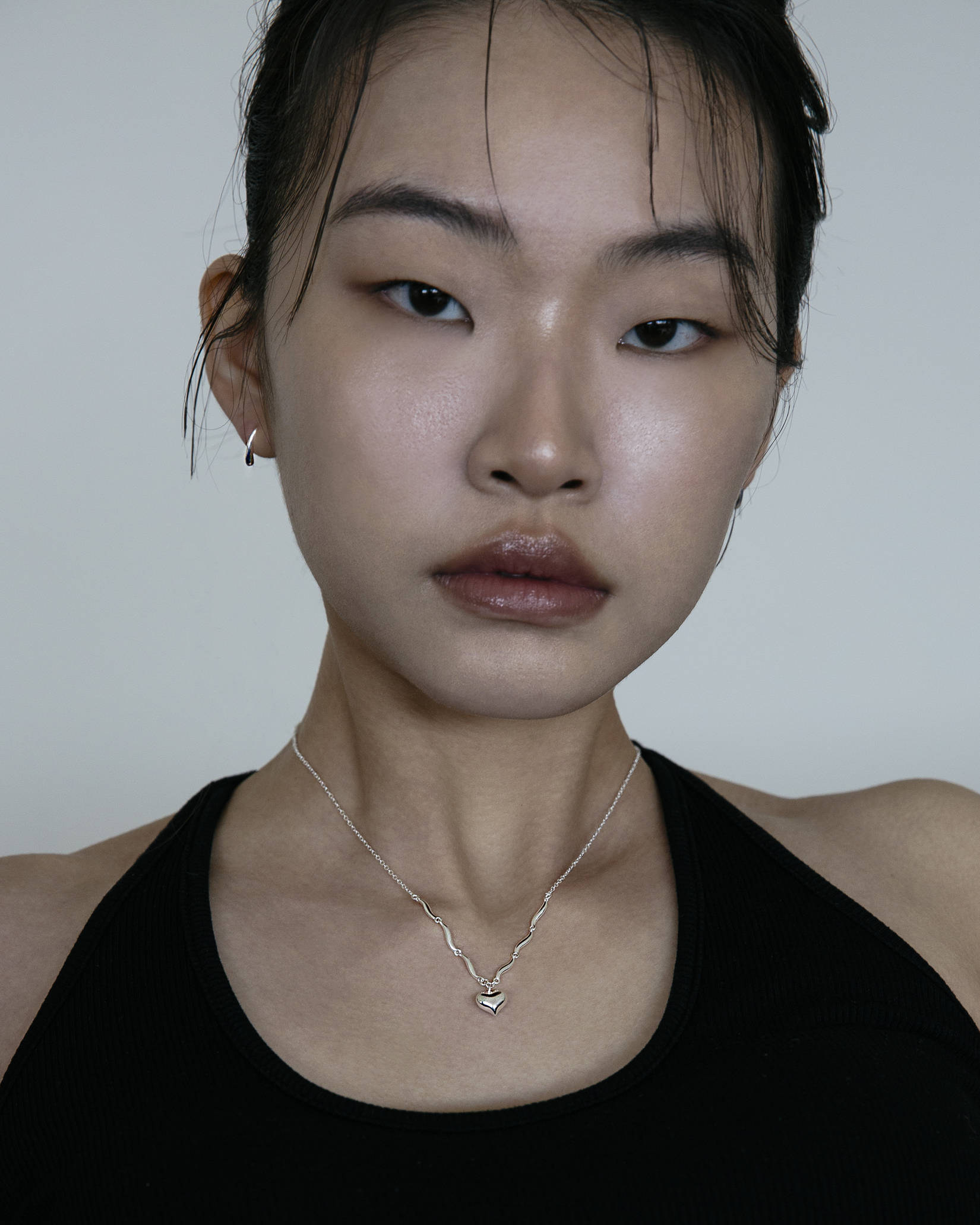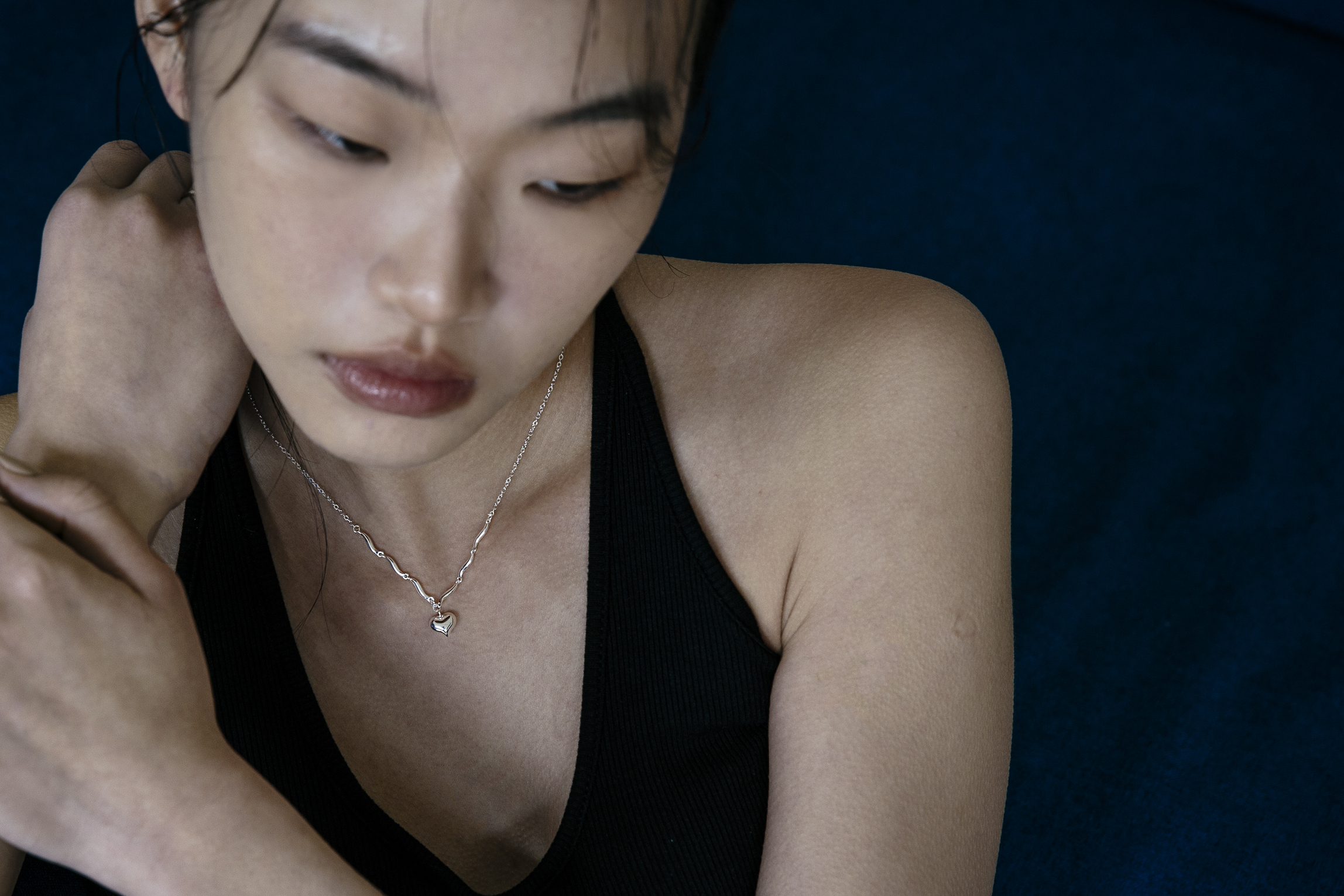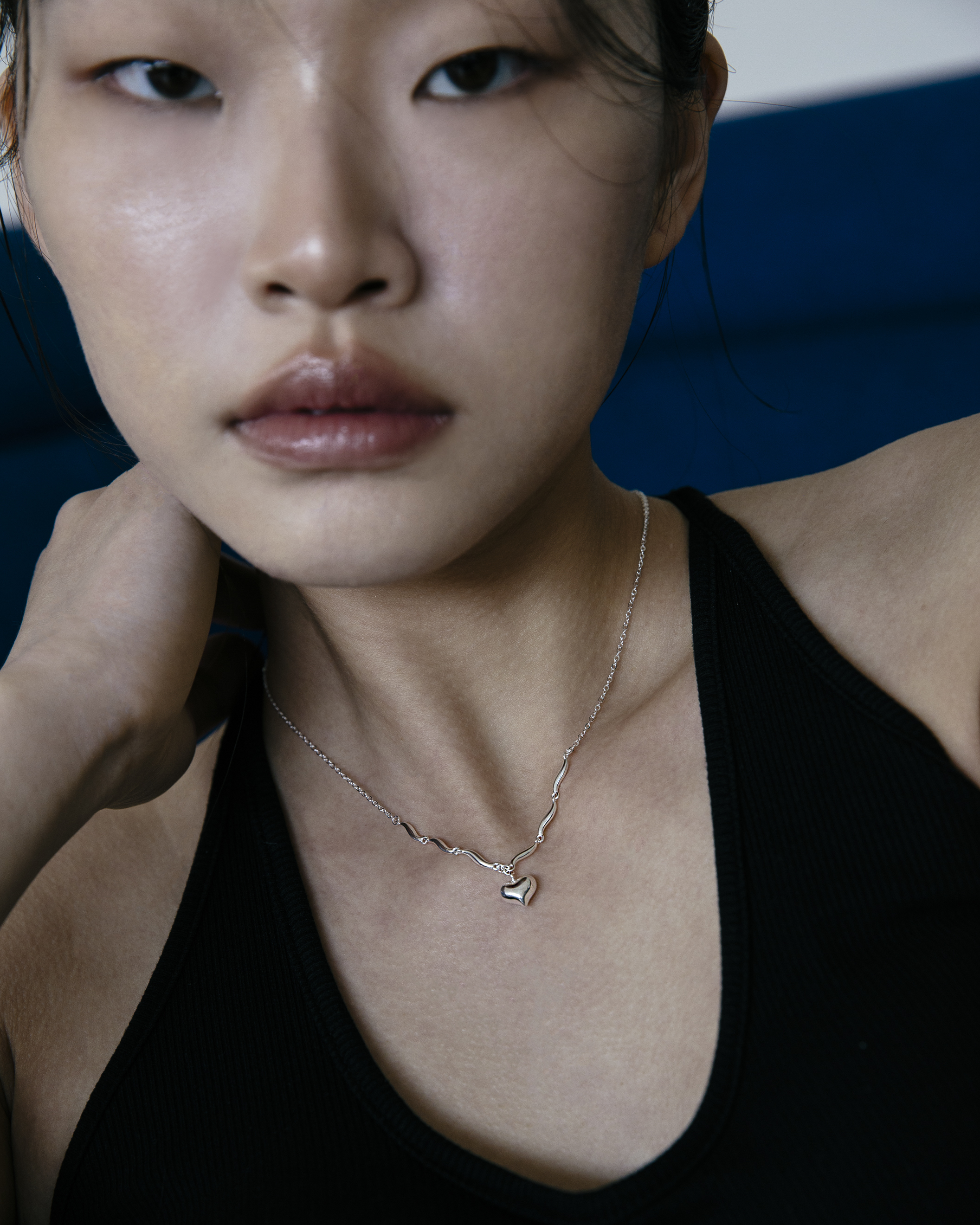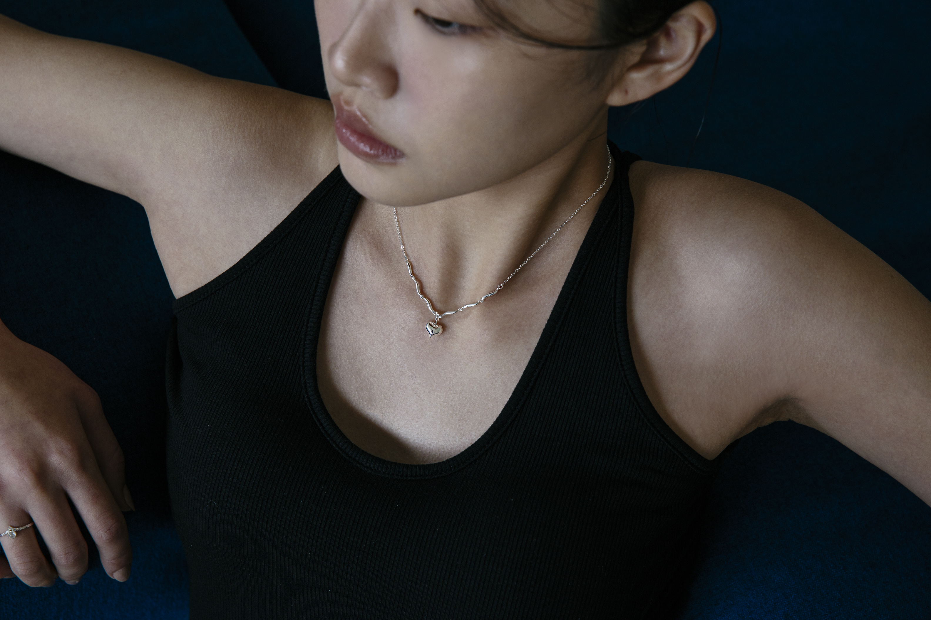 以波浪鍊節連結立體愛心墜飾,